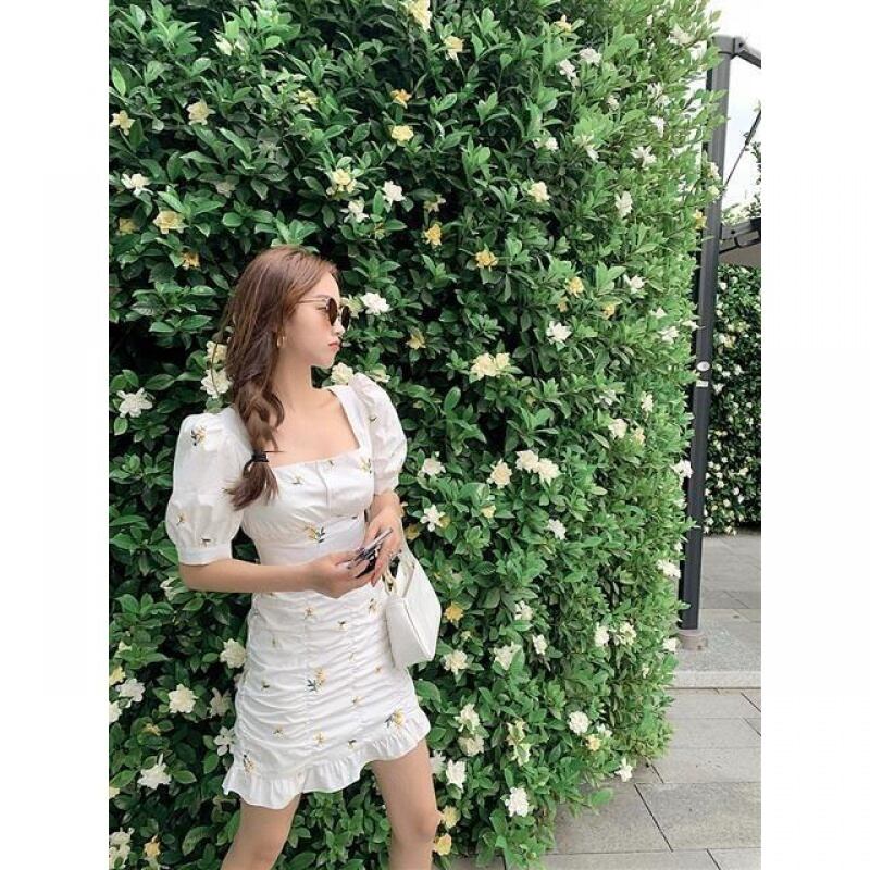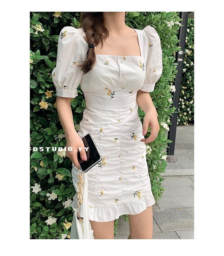 フランス初恋刺繡フローラルパフスリーブスクエアネックウエストドレス女性夏フィッシュテールバッグヒップスカートスリムスリム 刺繍 サマー 夏物 花柄 スクウェア TB2-5 TB2-574126364924