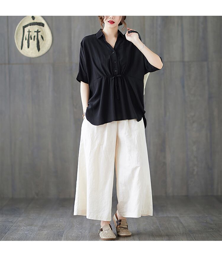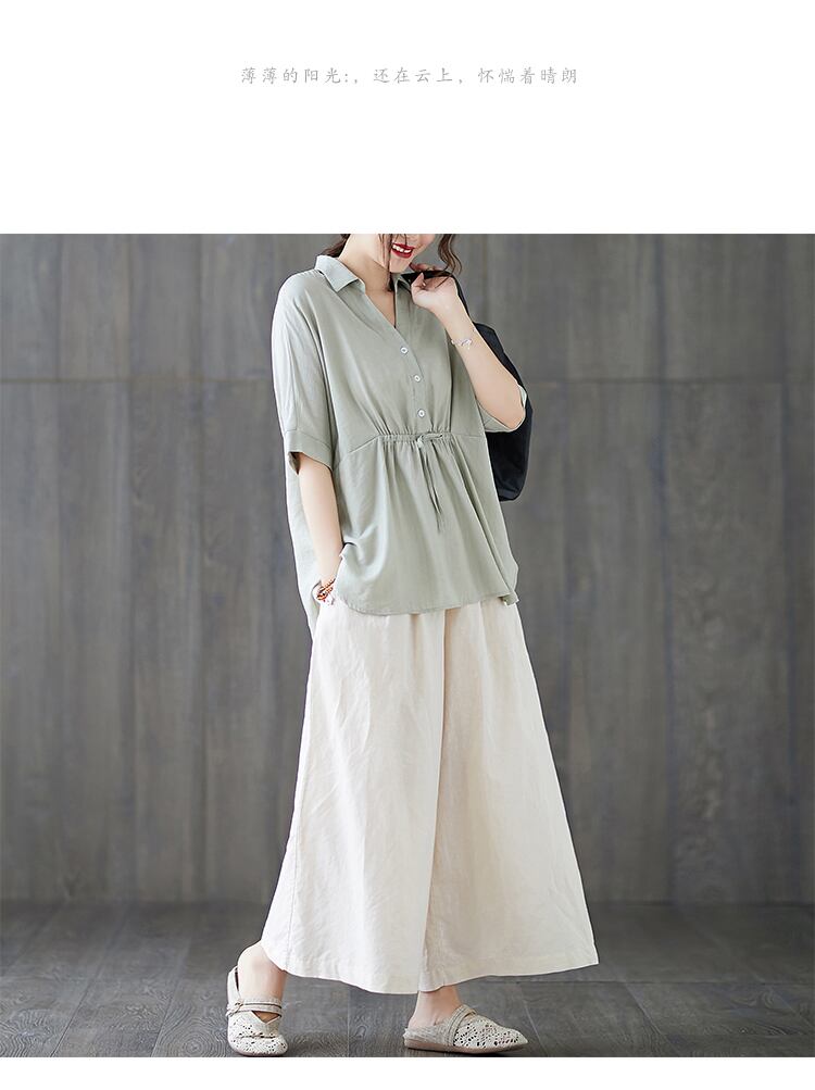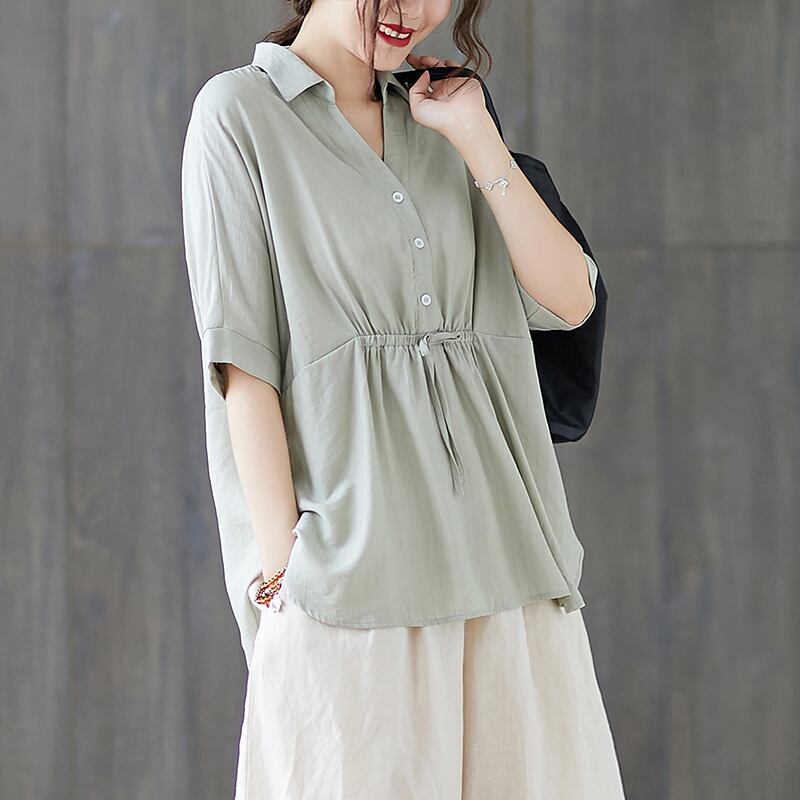 2021年夏の薄い文学的な純粋な色の巾着ネクタイシャツ女性の半袖プラスサイズのルーズベリーカバーカジュアルトップ 大きめサイズ サマー 夏物 ピュア TB2-12 TB2-1215989557751
