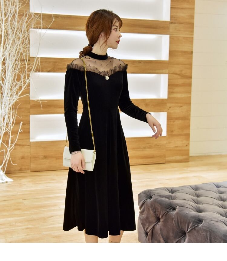 プラスサイズの女性のウエストウエスト気質レトロベルベットドレス女性の太った姉妹秋と冬のカバー腹底黒ロングスカート ブラック 大きめサイズ オータム 秋物 ウィンター 冬物 TB2-10 TB2-1055481196871