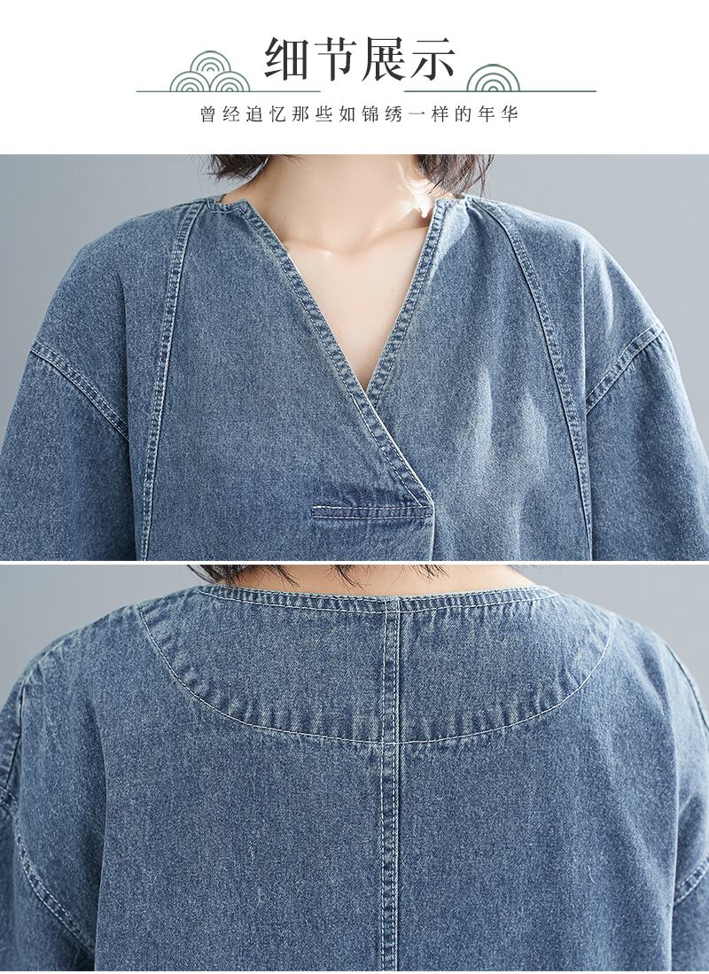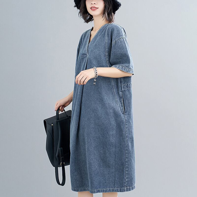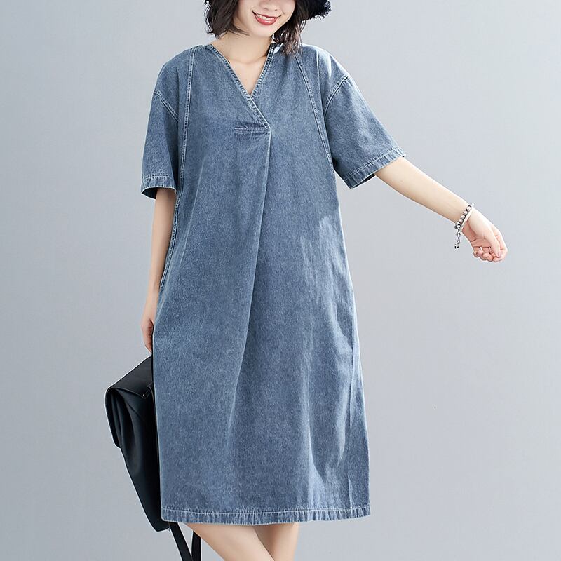 レトロVネックデニムワンピース女性2020年夏新作ルーズラージサイズスリミング半袖気質スカート ショート ハーフスリーブ 大きめサイズ サマー 夏物 TB2-8 TB2-879011847886