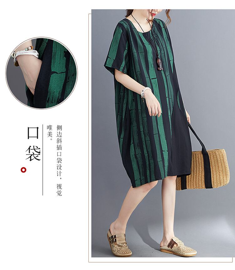 2021年夏の新しいラージサイズカバーベリースリミングドレスレトロプリントステッチファットシスター半袖ミドル丈ドレス 大きめサイズ サマー 夏物 TB2-255174572968