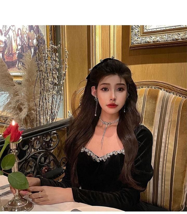 フランスのレトロなリトルフレグランドレス女性2021年春の新しいベルベットリトルブラックドレスウエスト細いaラインスカート スプリング 春物 TB2-5 TB2-570051270343