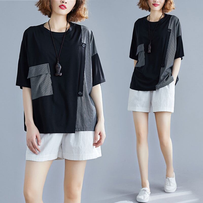 ファットシスターTシャツ年齢を減らすウエスタンスタイルのファッショナブルなサマードレス2021新しいルーズで薄いプラスサイズのステッチがベリートップをカバーmm 大きめサイズ 夏物 TB2-280001763856