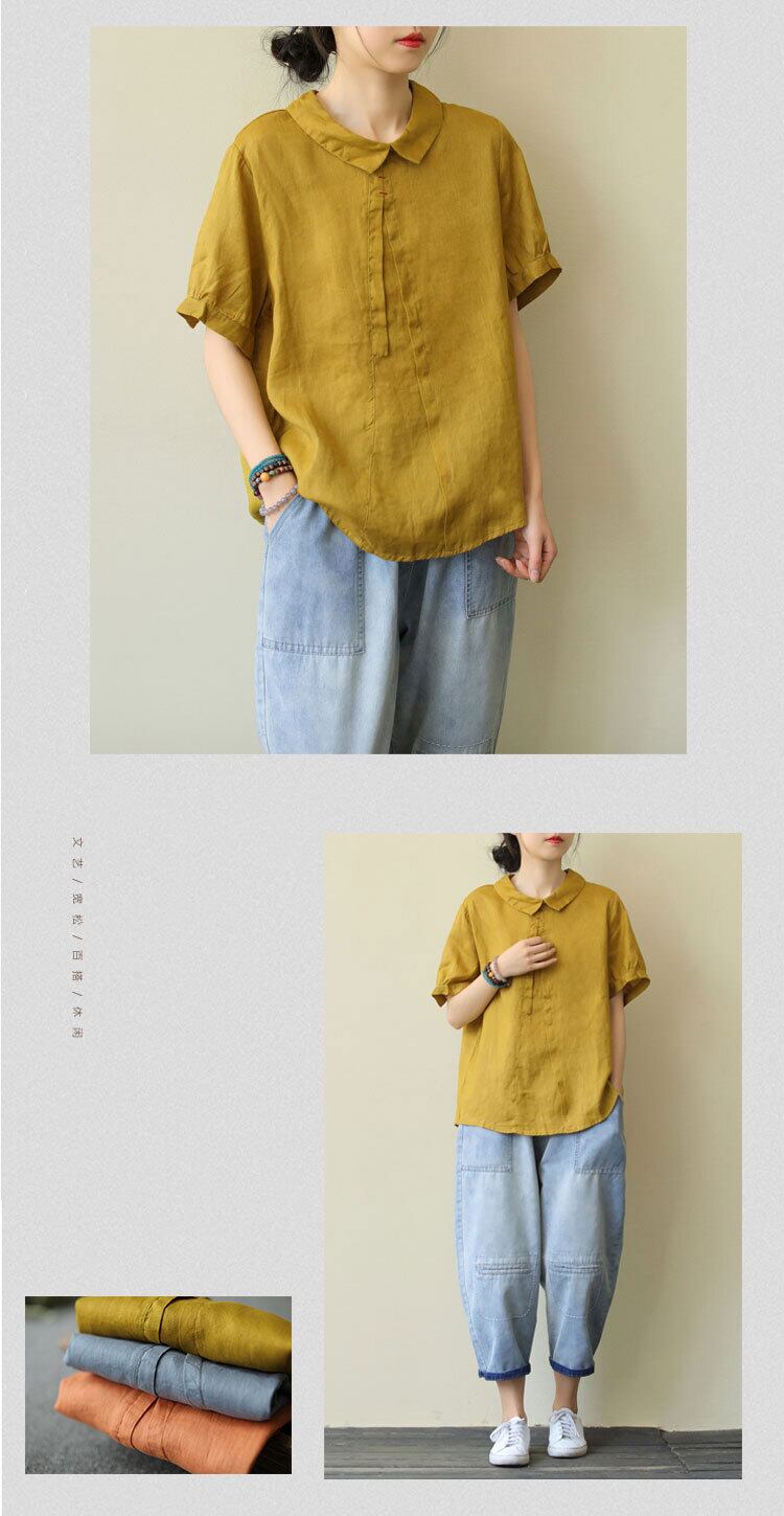 2020年夏の新作ラペル無地オールマッチカジュアルリネントップルーズリテラリー半袖薄手のシャツのバージョン サマー 夏物 ソリッドカラー TB2-11 TB2-1180284692565