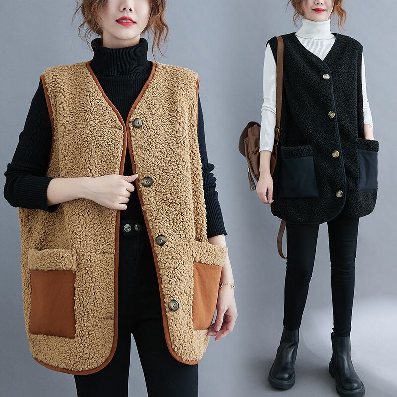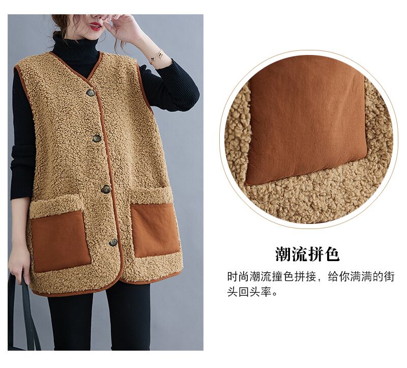 ウエスタンスタイルプラスサイズレディースラムベルベットベストレディースルーズで用途の広いシングルブレストウォームジャケットレディースウィンターニュースタイル2021 大きめサイズ 冬物 TB2-21340237735