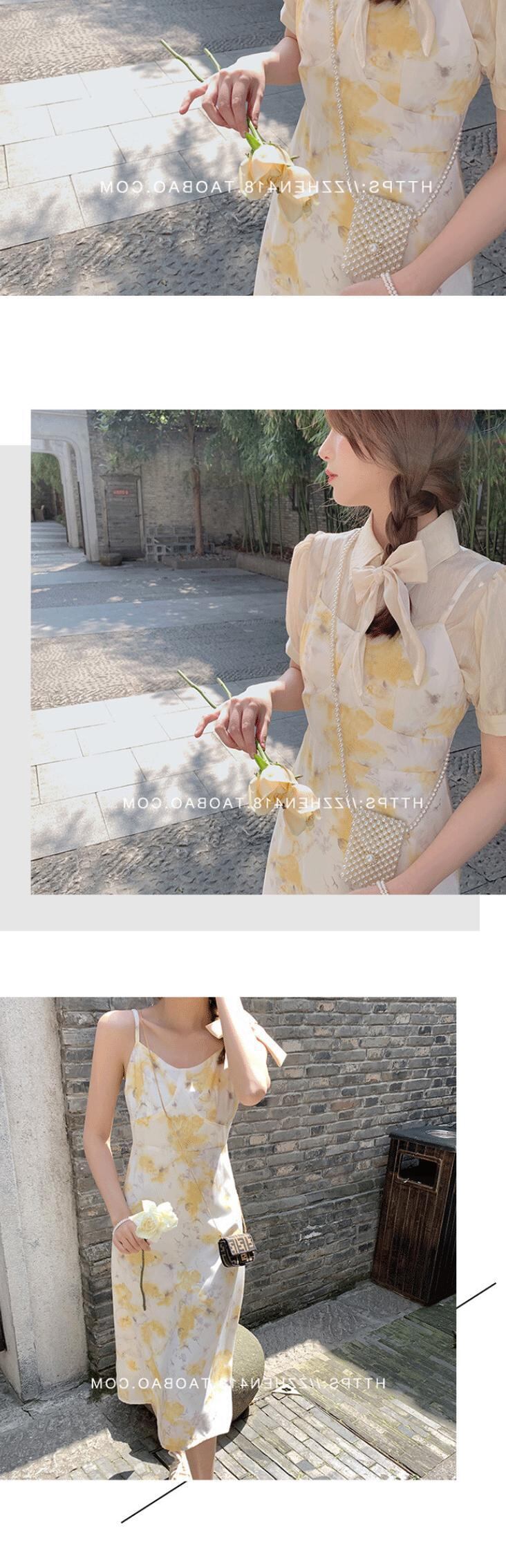 シフォンフローラルスリングドレス女性夏デザインセンス気質シャツレトロザンミートスーツスカートプラスサイズファットシスター 大きめサイズ サマー 夏物 花柄 TB2-10 TB2-1080686402198