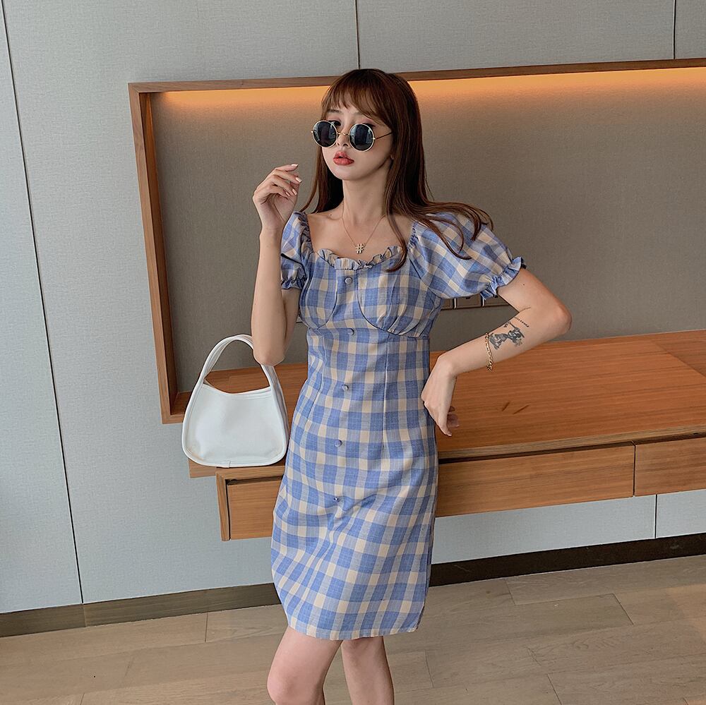 ファットシスターサマーウエストウエスト気質チェック柄ワンピースレディースプラスサイズ婦人服年齢を減らすウエスタンスタイルのスーパーフェアリースカート 大きめサイズ 夏物 TB2-10 TB2-101095419755
