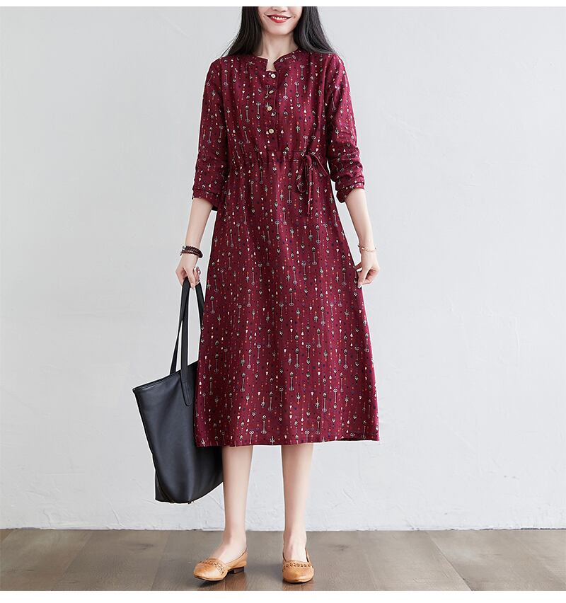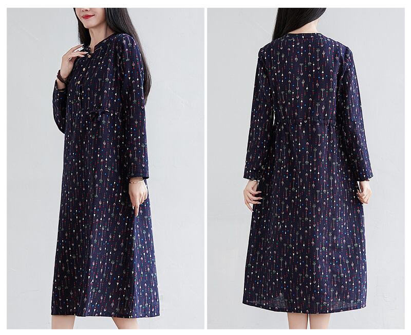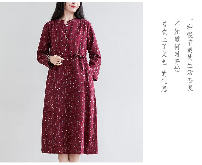 リテラリープラスサイズフローラルドレス女性ルーズウエストスリミングラウンドネック長袖ボトミングスカート女性2021年春新作 ロング 大きめサイズ スプリング 春物 花柄 Oネック TB2-22821268845