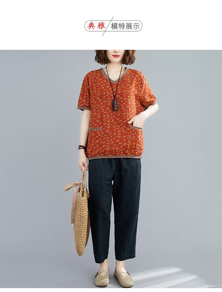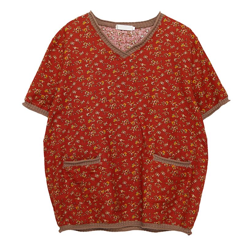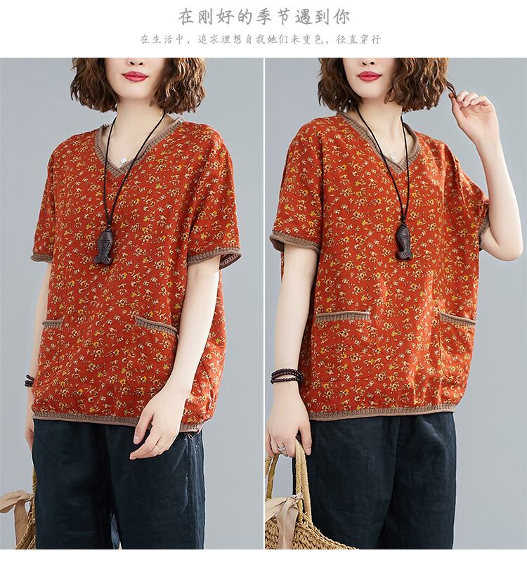 200キャティファットシスターmmラージサイズカバーベリーブラウスレディースレトロアートフローラルVネック半袖カジュアルTシャツ2021年夏 大きめサイズ サマー 夏物 花柄 TB2-296193499137