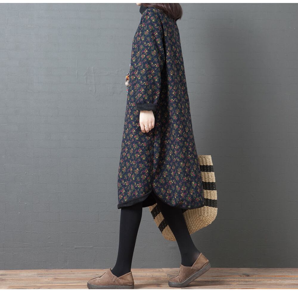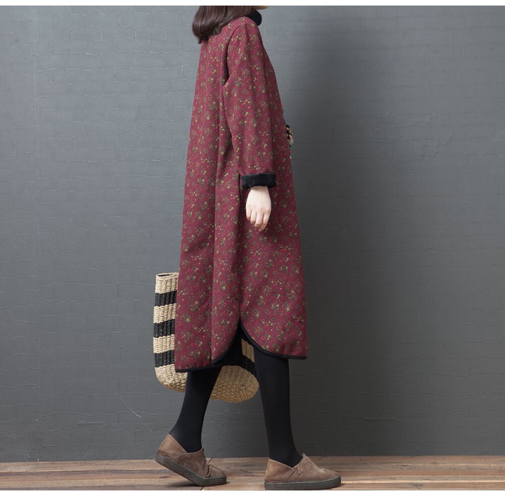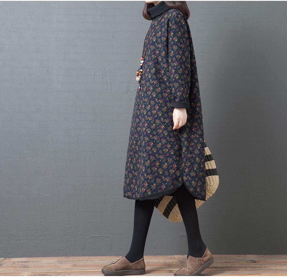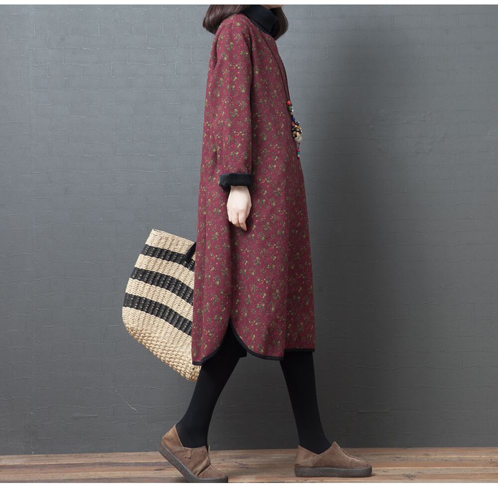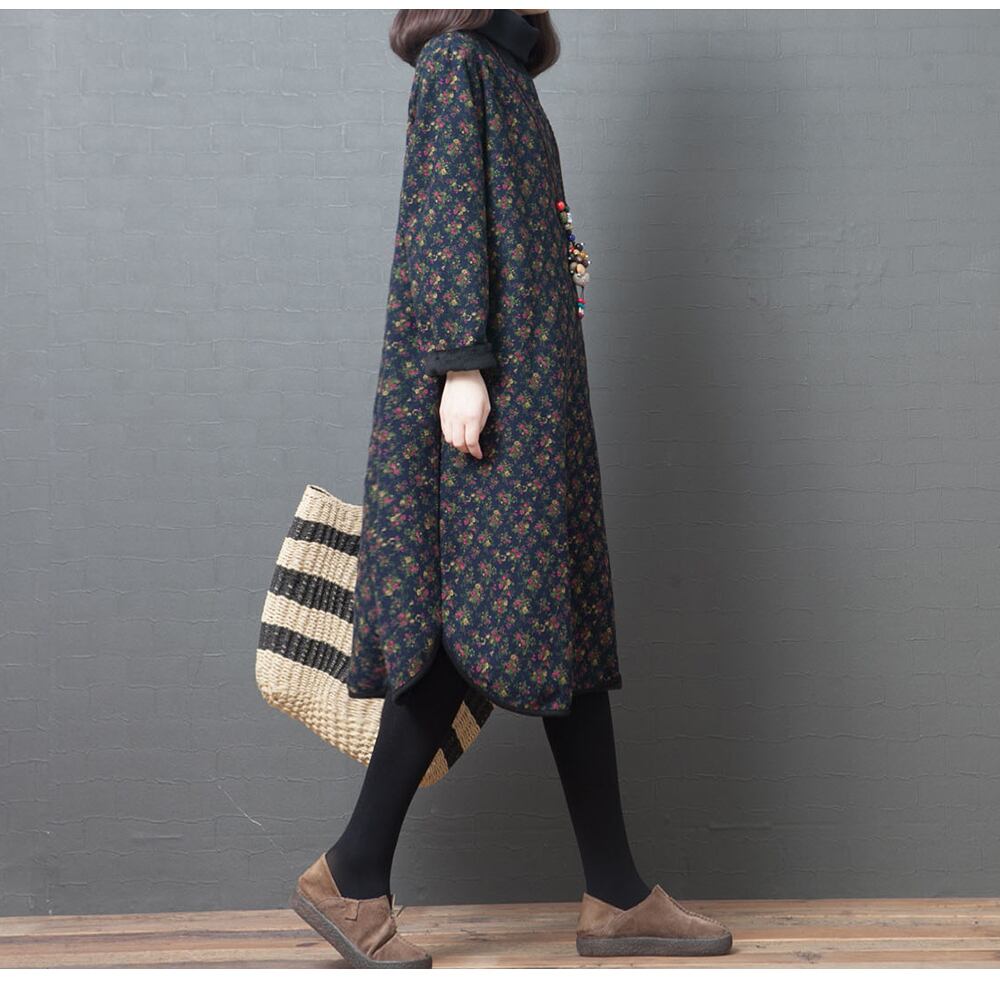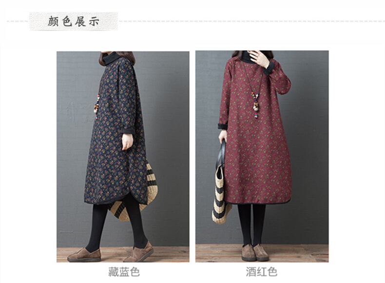エスニックスタイルフローラルプラスベルベット厚手のハイネックドレス女性文学とアートプラスサイズウォームベーススカート冬新2021 大きめサイズ ウィンター 冬物 花柄 TB2-218290776019