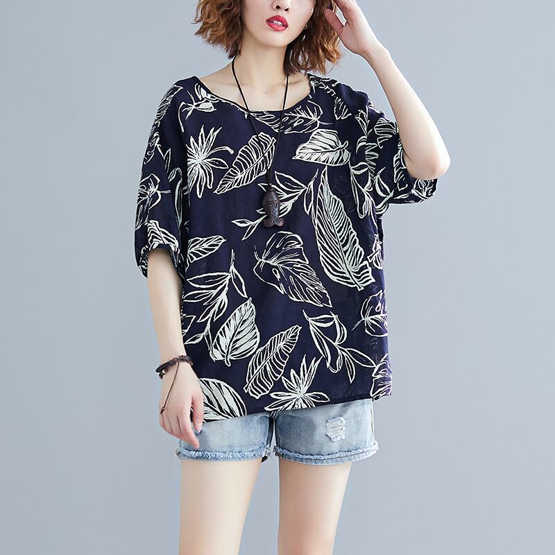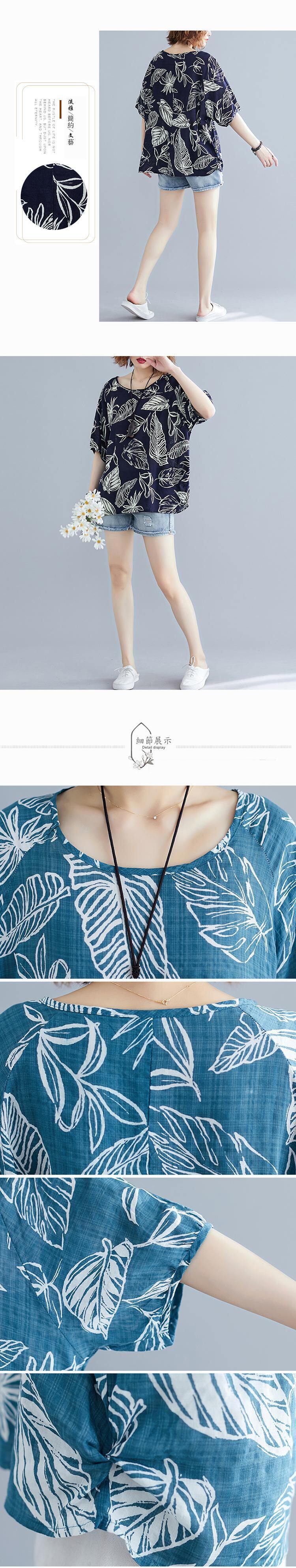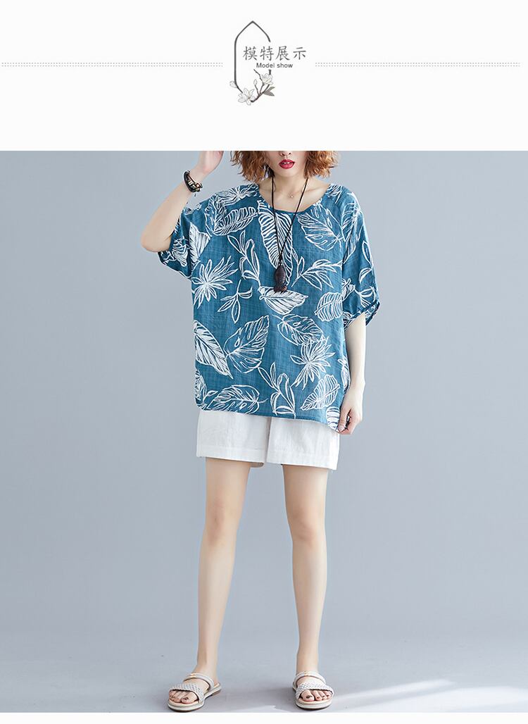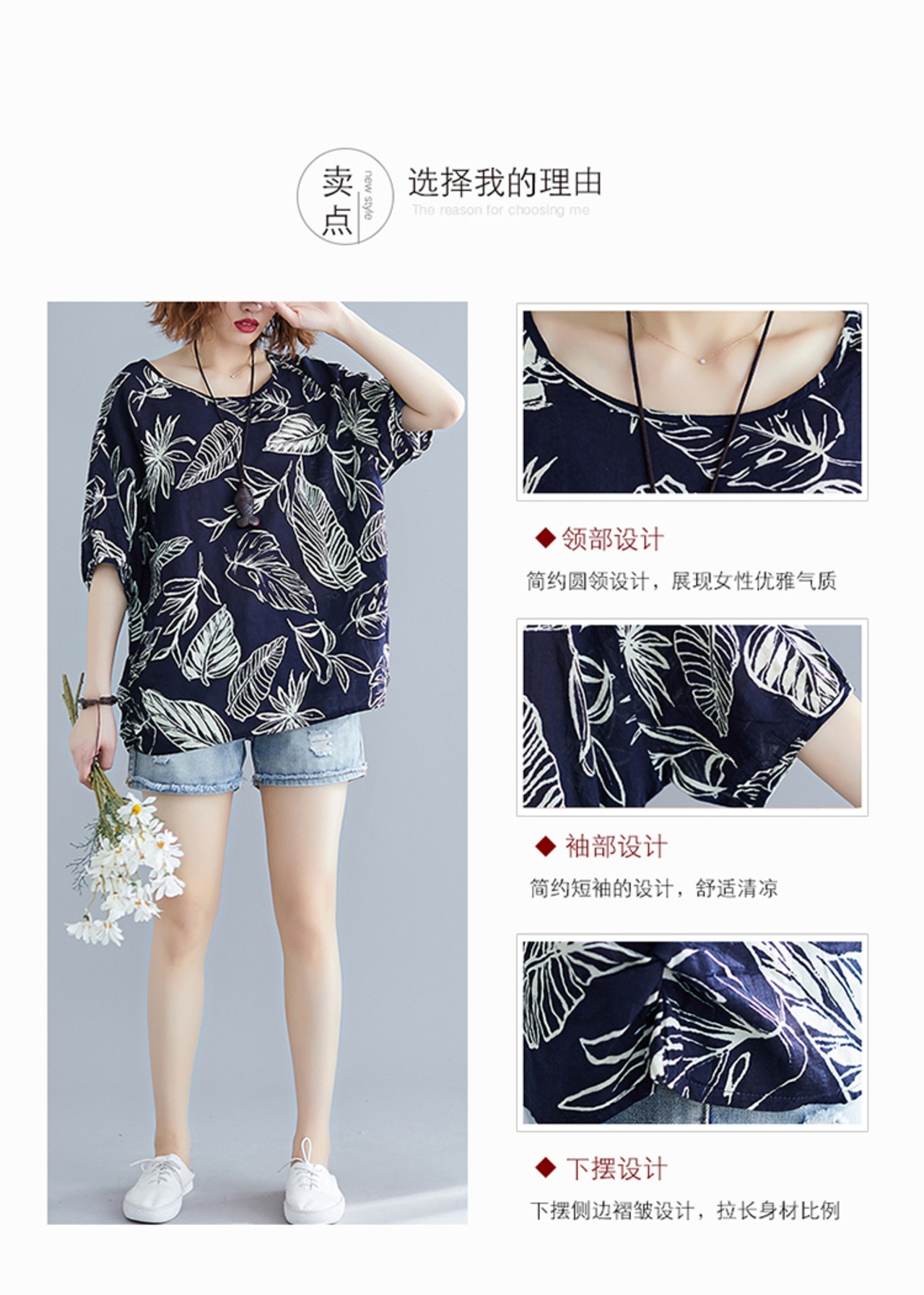 綿とリネンの半袖Tシャツの女性のルーズな大きなサイズの隠された肉は、腹を覆い、薄い洋風のバットスリーブに見えますオールマッチの半袖シャツの女性 コットン 大きめサイズ TB2-12 TB2-1276793617371