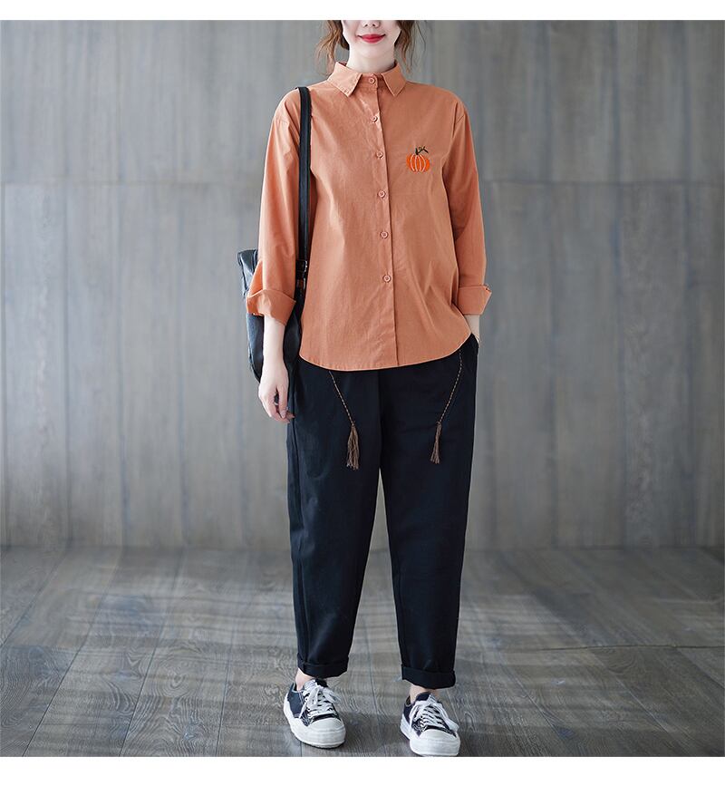 やや太い、大きいサイズ、薄い、腹を覆うトップ、太った姉妹mm、ウエスタンスタイル、年齢を減らす刺繡シャツ、2021年春の新作 刺繍 大きめサイズ スプリング 春物 TB2-252145042344