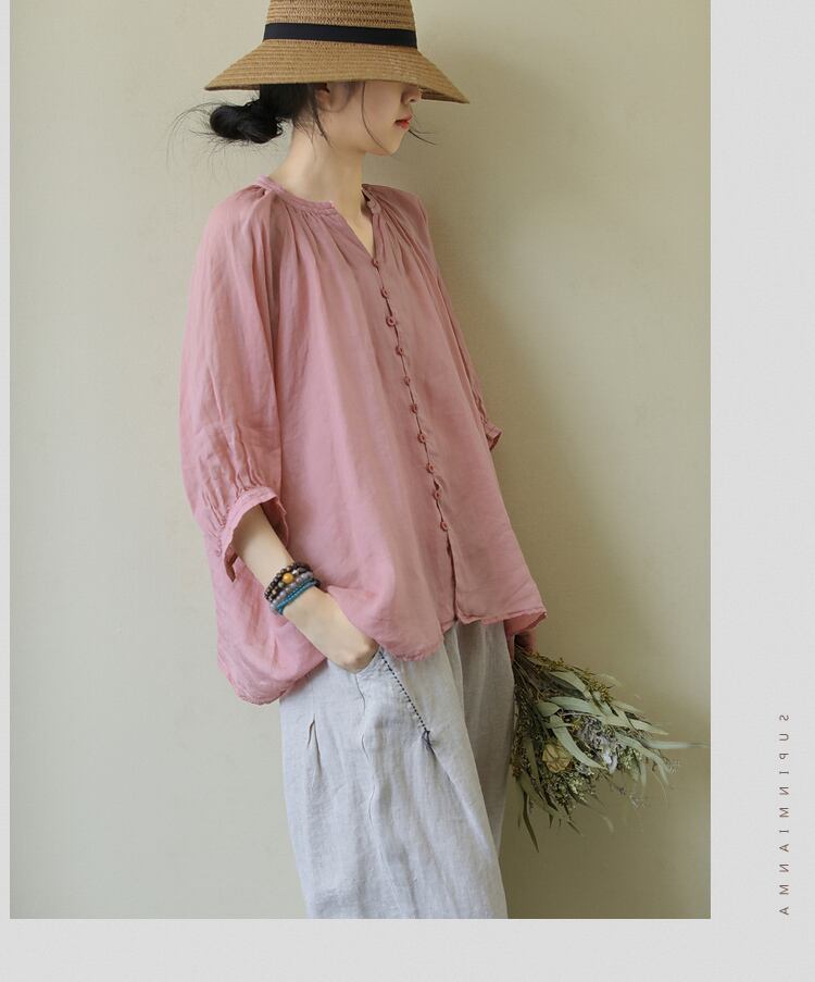 ルーズプラスサイズの女性用七分袖シャツ2021年夏の女性用ピュアカラーワイルドカジュアル通気性リネントップのバージョン 大きめサイズ サマー 夏物 TB2-11 TB2-1191541038655