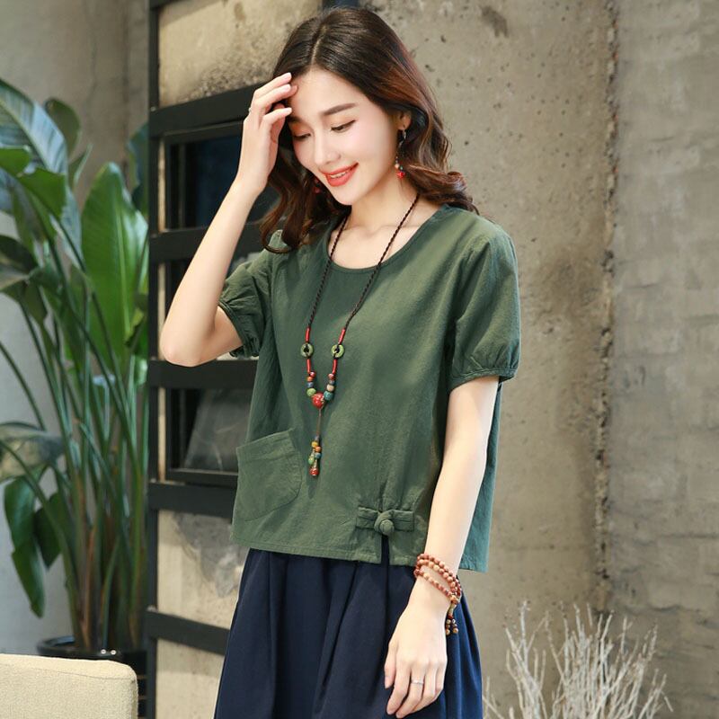 2020年夏のTシャツレディース半袖スモールシャツ新中年ショートルーズラージサイズリネンエスニックコットンとリネントップ 大きめサイズ サマー 夏物 TB2-11 TB2-1130563759119
