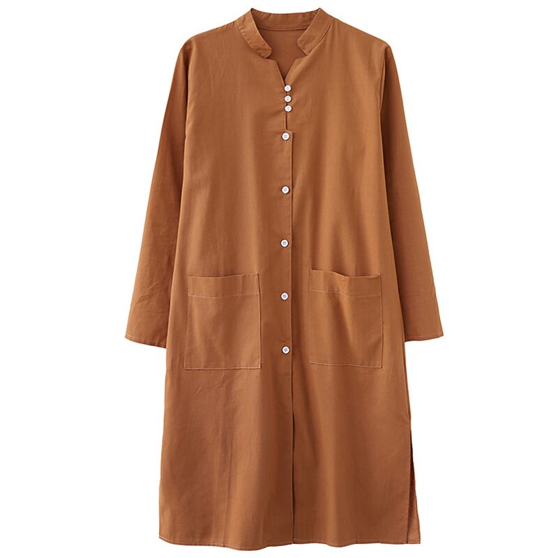 コットンリネンシャツ女性2021年春の新しいルーズラージサイズ女性の長袖文学ミドル丈リネンシャツスカート女性 ロング 大きめサイズ スプリング 春物 TB2-12 TB2-1244615045504