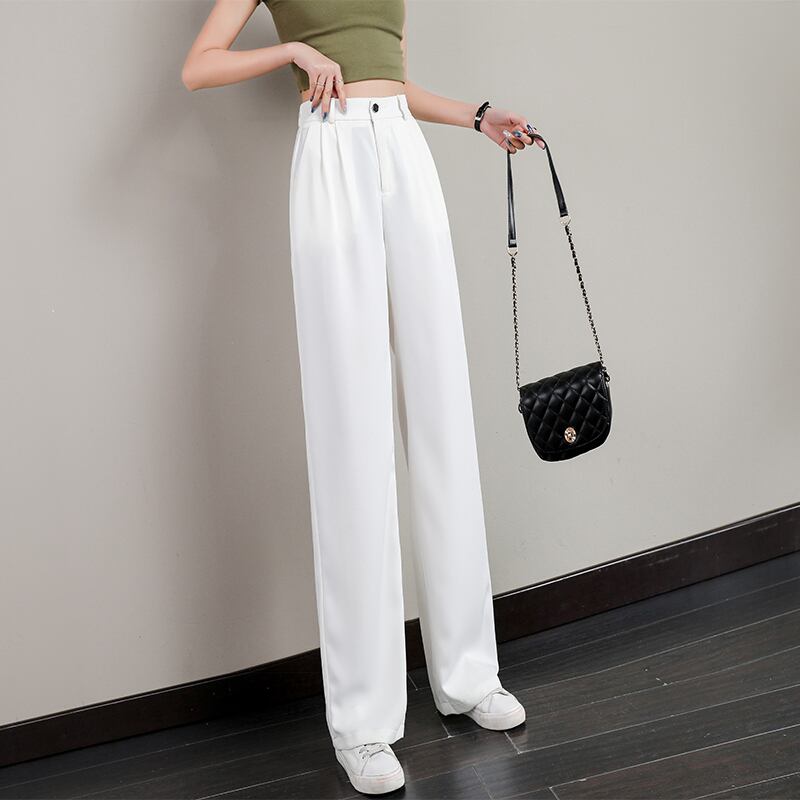 ホワイトワイドレッグパンツレディースサマーシンセクション2021ニューストレートパンツハイウエストドレープアイスシルクモップスーツパンツ ハイウェスト 夏物 TM2-4 TM2-489779193613