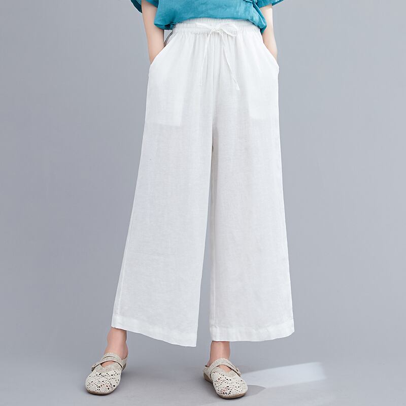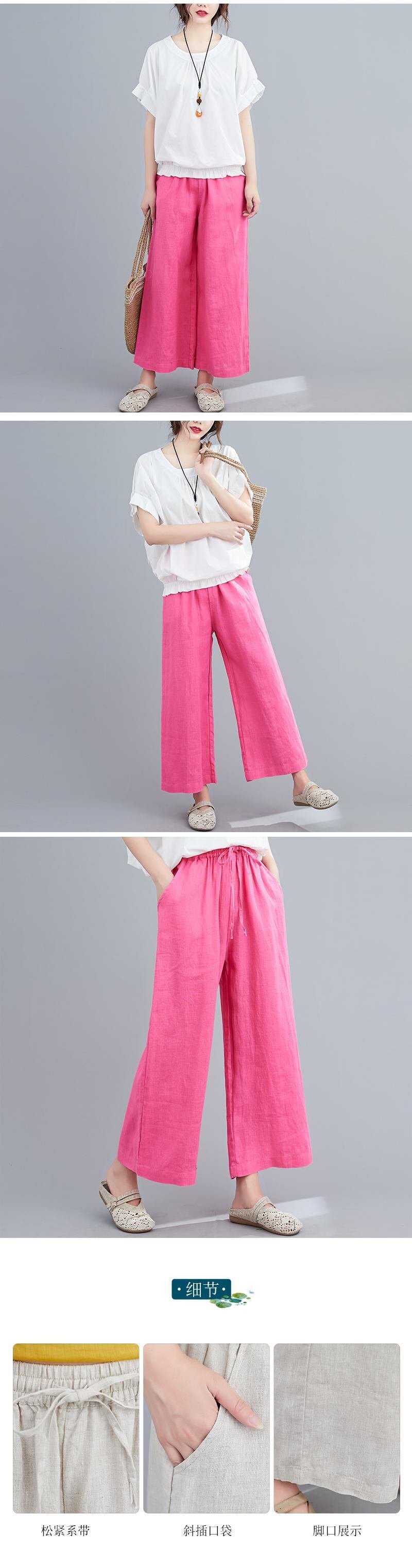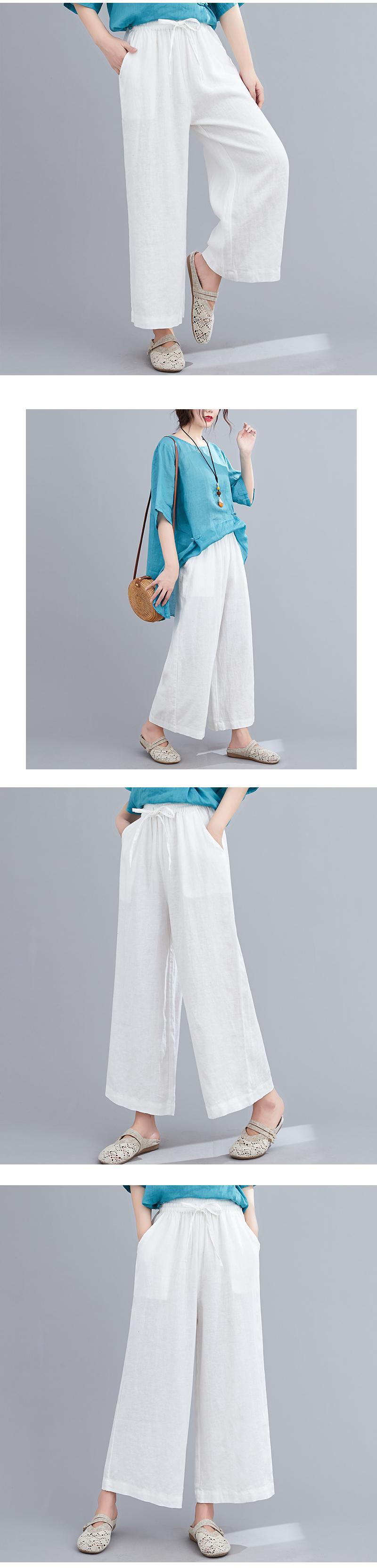 リネンストレートパンツ女性の文学と芸術レトロなリネンクロップドパンツルーズラージサイズレースアップパンツコットンとリネンワイドレッグパンツ 大きめサイズ ワイドパンツ TB2-11 TB2-1149619862048