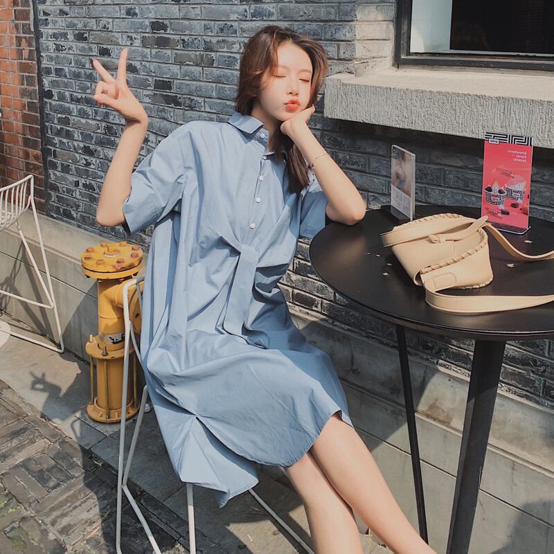 ファットシスタールーズ気質ワンピースラージサイズは薄手洋シャツロングスカート夏新作カバーお腹ボトミングスカート 大きめサイズ サマー 夏物 TB2-10 TB2-1085594452594