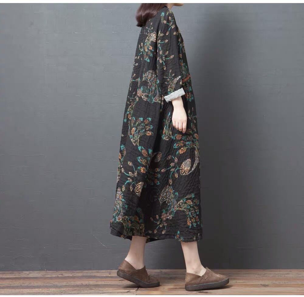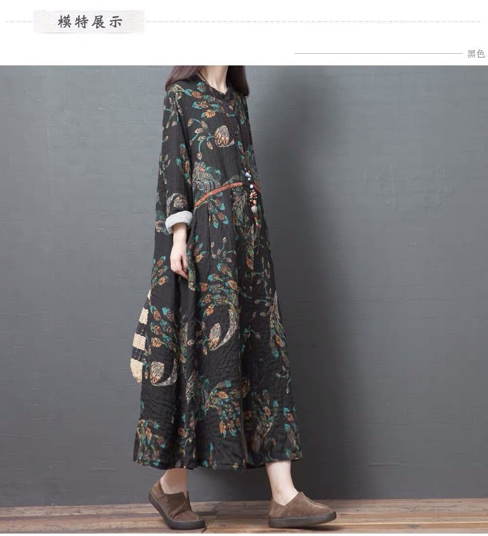 2021年春の新バージョンルーズで薄いプラスサイズのカジュアルなラウンドネックコットンとリネンの長袖ミドル丈シャツドレス ロング 大きめサイズ スプリング 春物 Oネック TB2-12 TB2-1228708601872