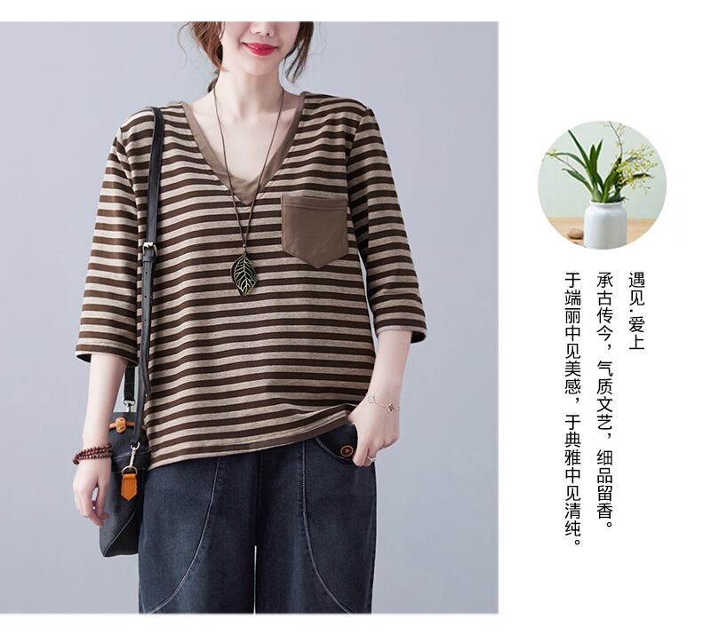 2021年ルーズストライプベリーTシャツレディーススリミング年齢を減らすステッチコントラストカラー七分袖トップ夏新作スタイル サマー 夏物 TB2-12 TB2-1269914383598