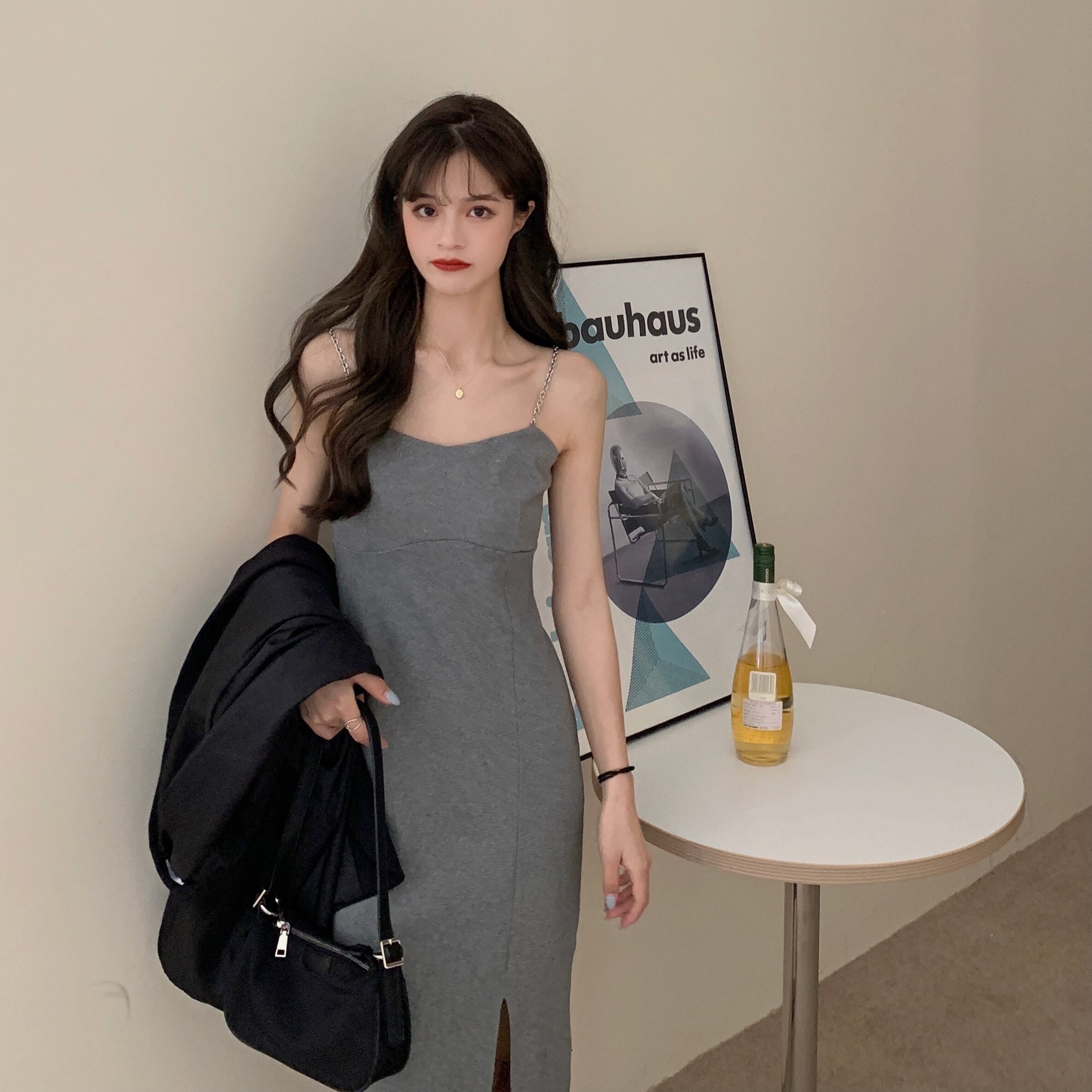 スリングスカート2021新夏スリムロングスカートスリムミドル丈ヘップバーンスタイルブラックスプリットドレス女性 サマー 夏物 TB2 TB258078062284
