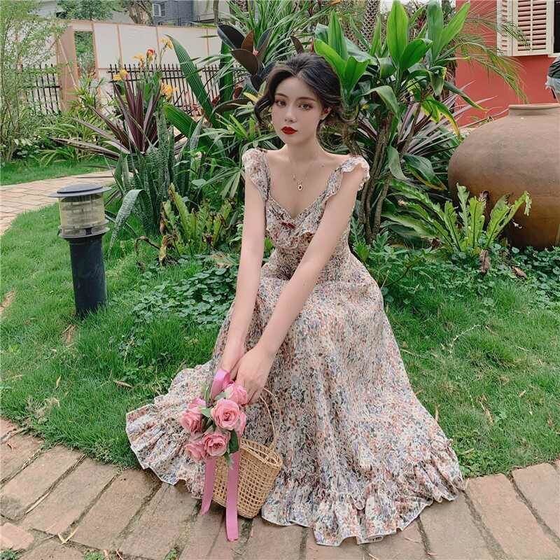 夏のファッショナブルな気質レディースフレンチロータスリーフカラーノースリーブベストスカートフレッシュフローラルサスペンダースカートドレスは白です ホワイト サマー 夏物 花柄 TB2-5 TB2-532851186820