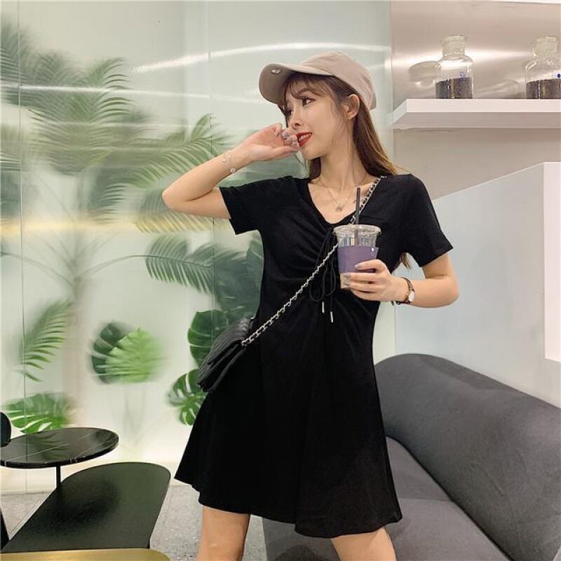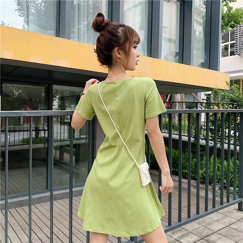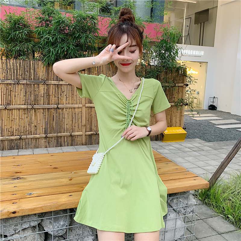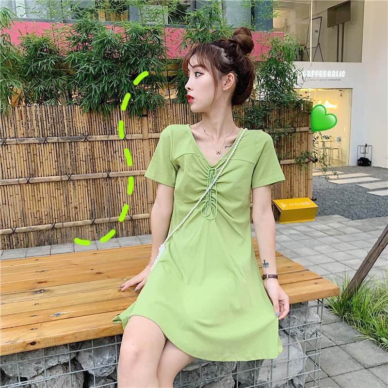 小さな新鮮な春と夏の新しいインドローストリングウエスト学生センハイウエスト半袖Aラインアボカドグリーンドレス ハイウェスト ショート ハーフスリーブ スプリング 春物 サマー 夏物 TB2-5 TB2-557534884068