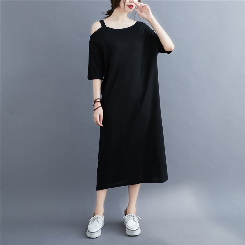 ラージサイズレディース200kgサマードレス無地半袖ファットmmルーズワンワードネックストラップレスミドル丈ニットワンピース 大きめサイズ 夏物 ソリッドカラー TB2-8 TB2-879551437269
