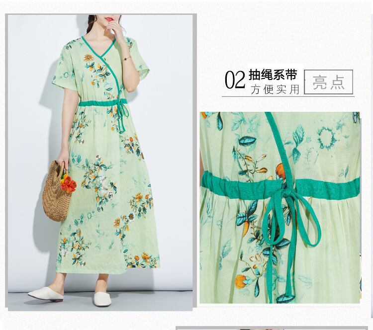 2021年の新しい女性のエスニックスタイルのスカートコットンとリネンプリントラウンドネックドレスルーズウエストスリムロングスカート Oネック TB2-12 TB2-1221723216190