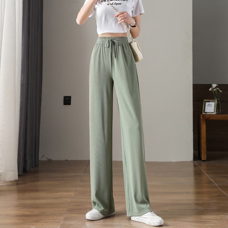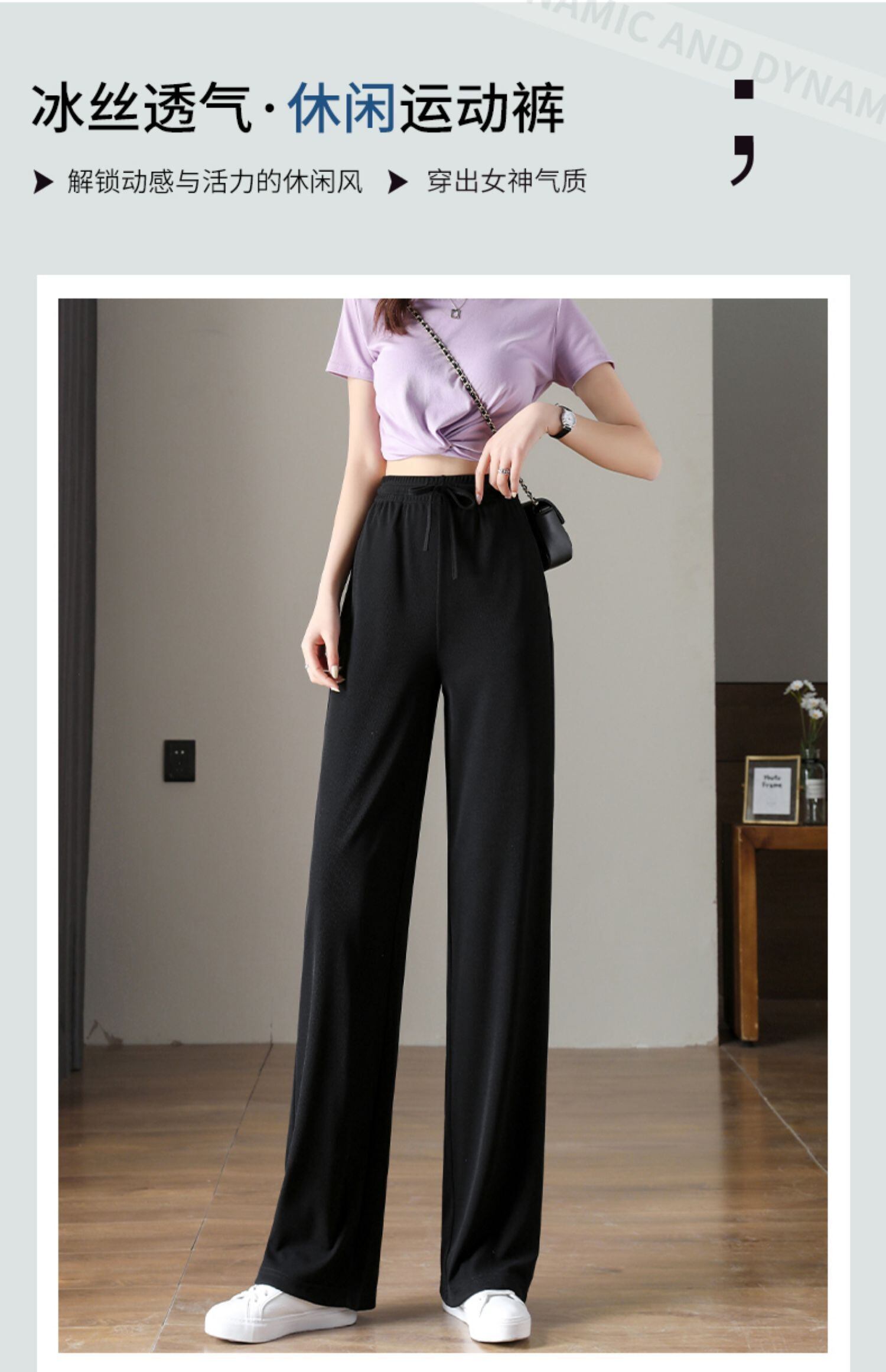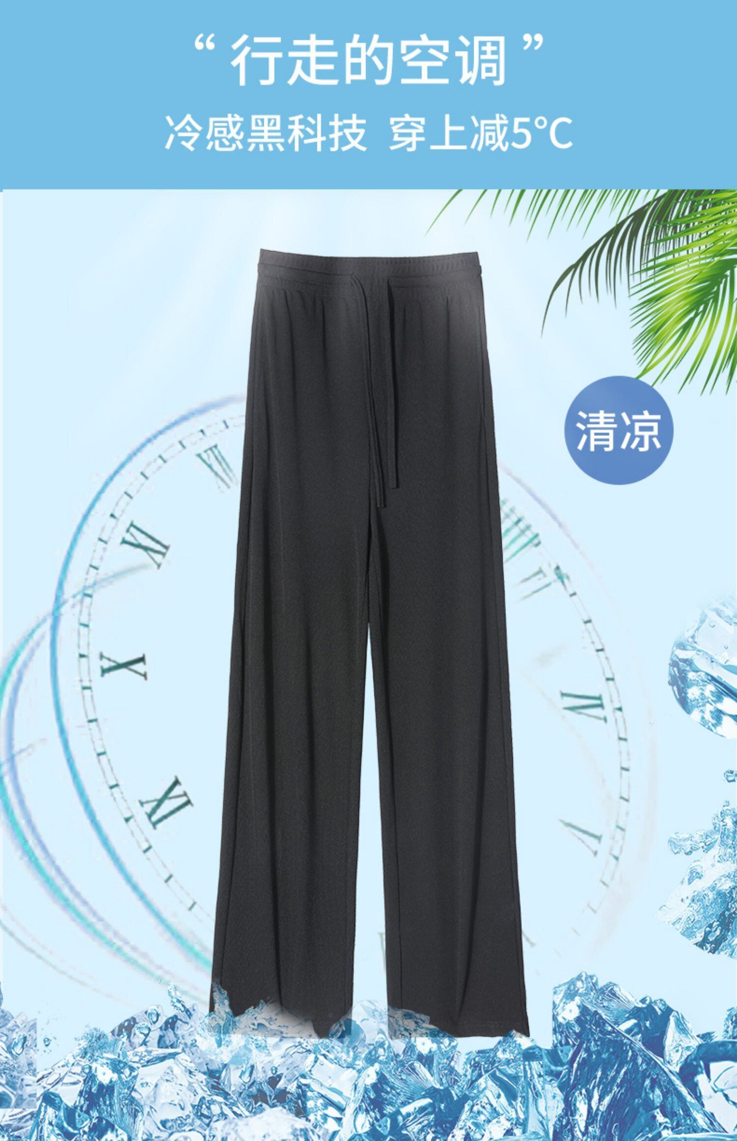 アイスシルクワイドレッグパンツレディースサマー薄黒ルーズストレートパンツドレープは薄くて速乾性のモップカジュアルパンツ ブラック 夏物 TM2-4 TM2-454750468306