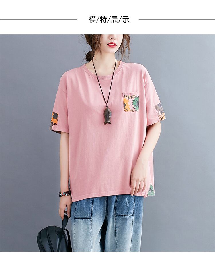 ファットシスタープラスサイズの女性用半袖Tシャツ女性文学とアートレトロラウンドネックルーズプリントトップス2021夏の新しいスタイル 大きめサイズ サマー 夏物 Oネック TB2-292666975437