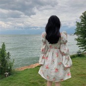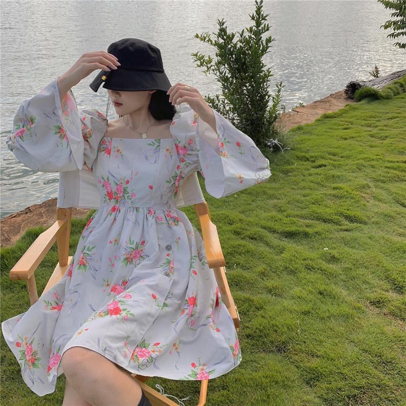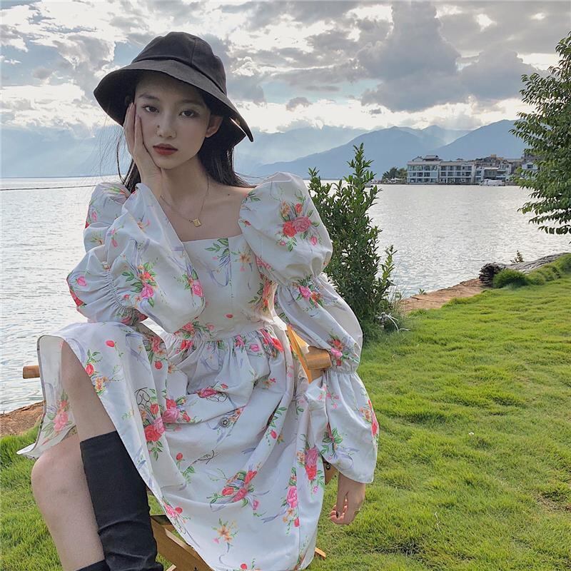 2021年春新花ドレス女神ファンレトロパフスリーブデザインセンスニッチ気質スカート[3 スプリング 春物 花柄 TB2-5 TB2-587734111001