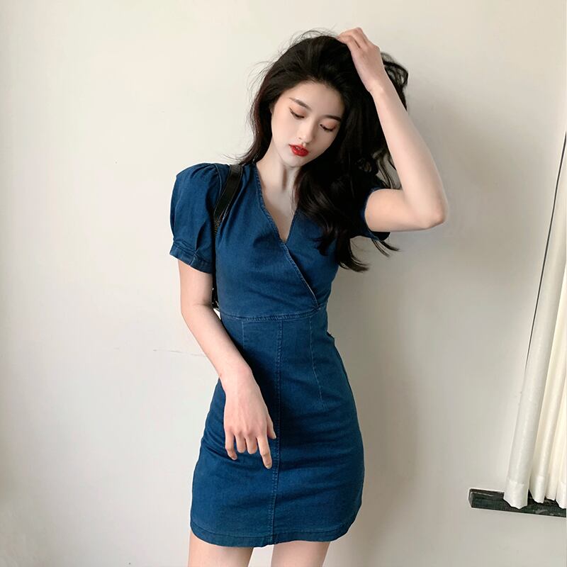 2021年の新しい夏のヘップバーンスタイルの年齢を減らす気質デニムドレス太った姉妹は薄いセクシーなバッグヒップスカートプラスサイズでした 大きめサイズ サマー 夏物 TB2-10 TB2-1036305276342