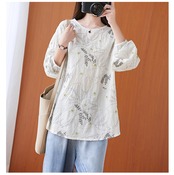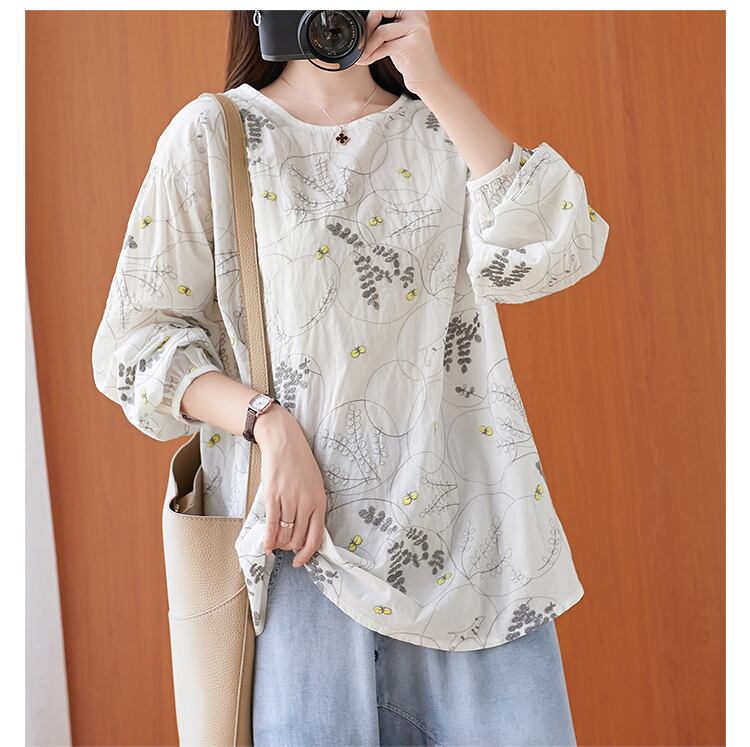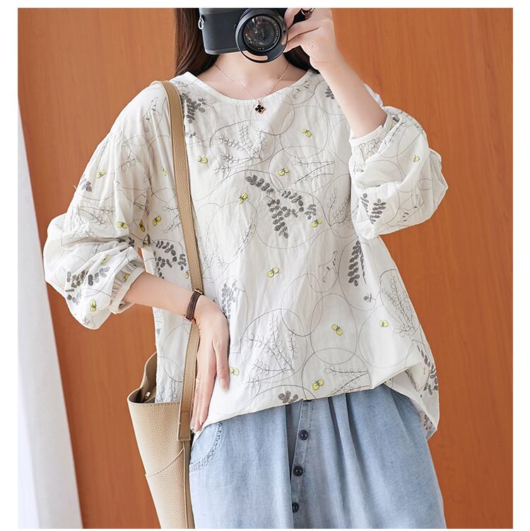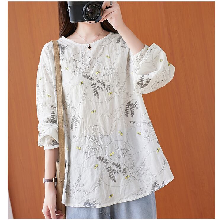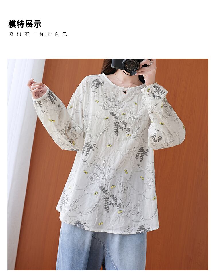 太った女性が腹を細くするブラウス文学プラスサイズの女性の刺繡長袖カジュアルTシャツ女性初春新2021 ロング 刺繍 大きめサイズ スプリング 春物 TB2-250755092677