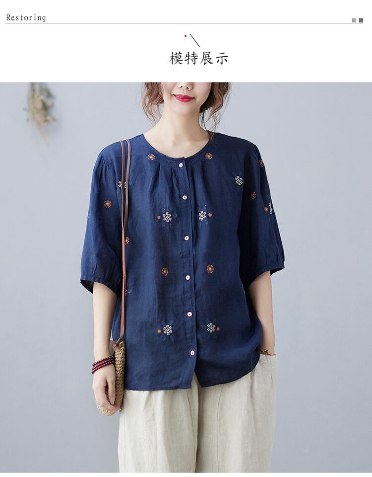 2021年夏の新しいスタイルの文学的なレトロカジュアル刺繍リネンシャツルーズプラスサイズ5ポイントスリーブコットンとリネンシャツの女性 レッド 大きめサイズ サマー 夏物 TB2-12 TB2-1225891263081
