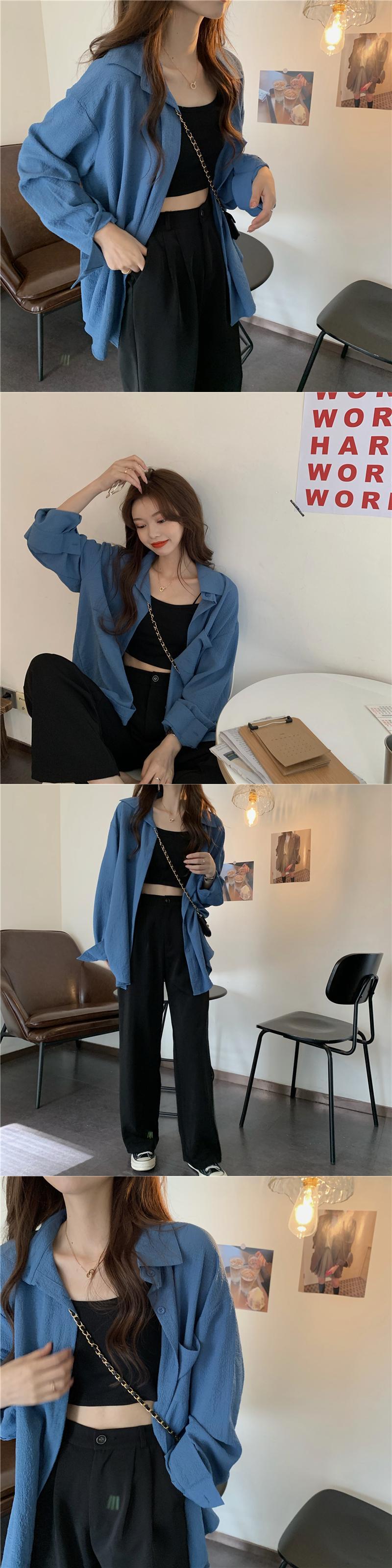 レトロな青いシャツの女性のデザインセンスニッチ2021のバージョン新しいミドル丈の薄い日焼け止めシャツシャツジャケット ブルー TB2 TB245350963157
