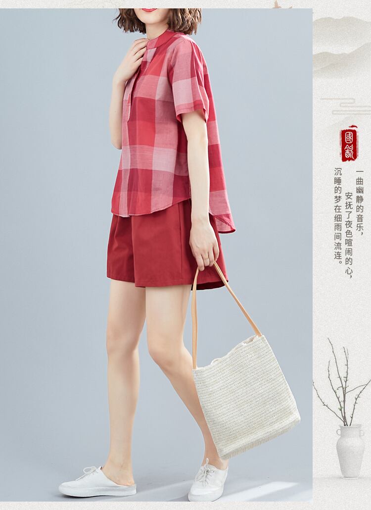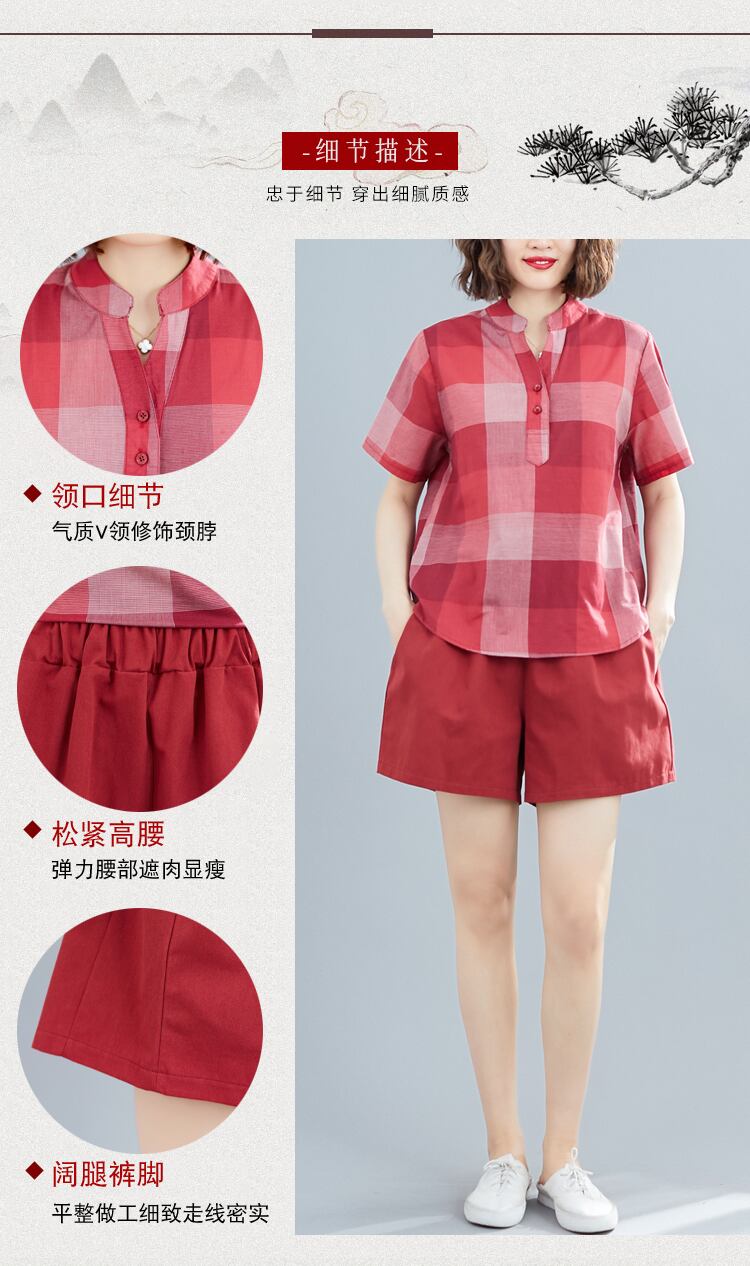 2020レトロアートプラスサイズファットマザープラスファットチェック柄ミドルスリーブTシャツ女性サマードレスミドルエイジドマザーコットントップ 大きめサイズ 夏物 TB2-11 TB2-1185623446048