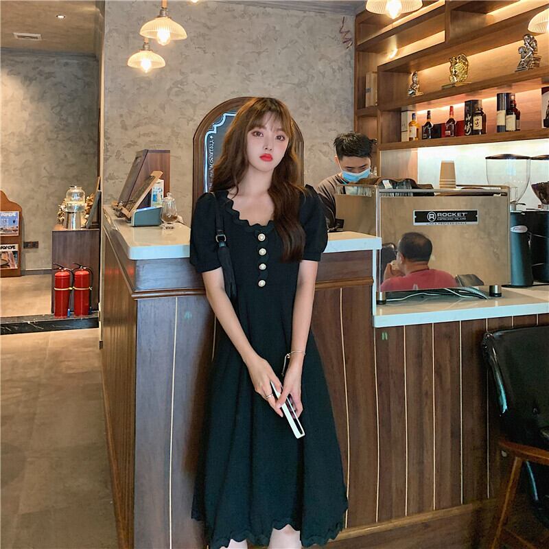 2020年の新しいスーパーフェアリー気質レトロドレス女性の夏の太った姉妹カバー腹は年齢を減らすヘップバーンリトルブラックドレスプラスサイズ 大きめサイズ サマー 夏物 TB2-10 TB2-1040149580105