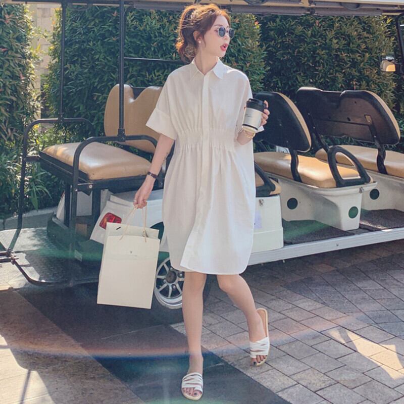 ファットシスターサマーデザインセンス半袖シャツスカート大サイズカバー肉ゆるい気質ドレスは薄手のプラティコドンスカートでした 大きめサイズ 夏物 TB2-10 TB2-1060244946543