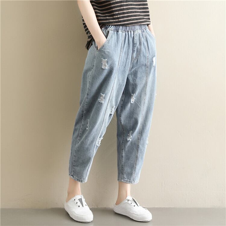 2020年春夏新作プラスサイズレディースパンツは、ゆったりとした破れたジーンズの薄めバージョンのレディースカジュアルナインポイントパンツ 大きめサイズ スプリング 春物 サマー 夏物 TB2-8 TB2-815223434062