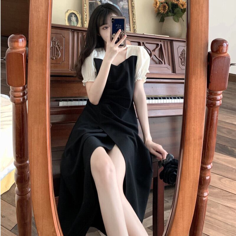 女神ファンチン時代は薄い気質のドレス太った姉妹セクシーなスプリットレトロロングスカートラージサイズカバー肉リトルブラックドレス 大きめサイズ TB2-10 TB2-1074276548441