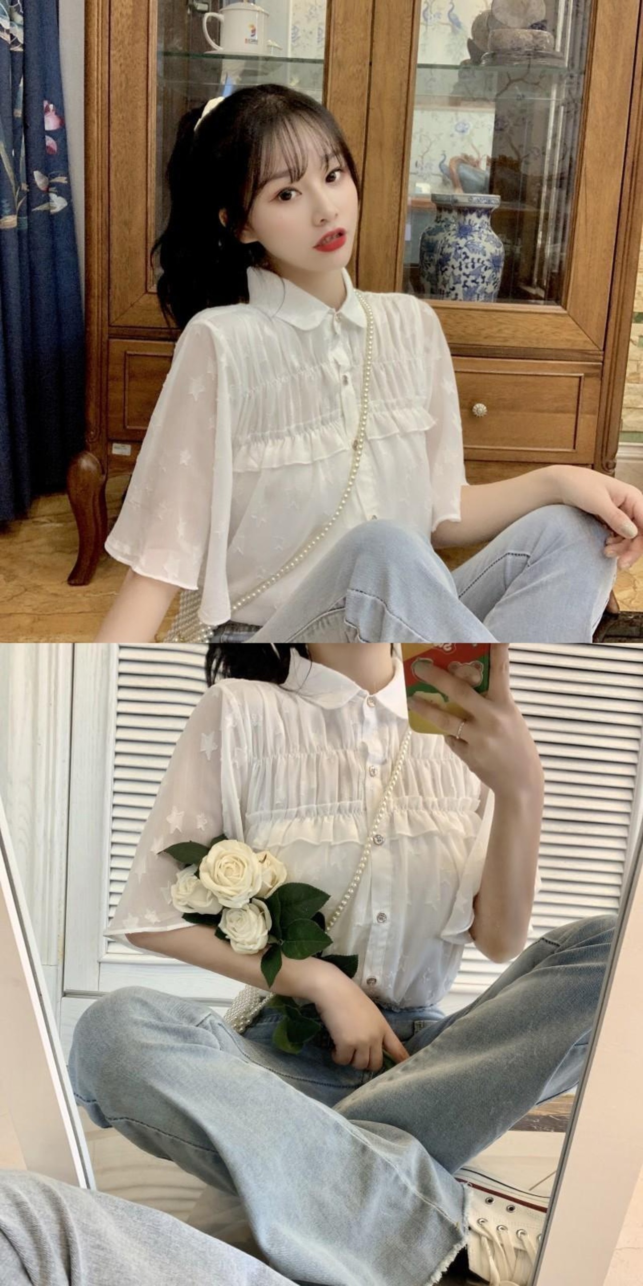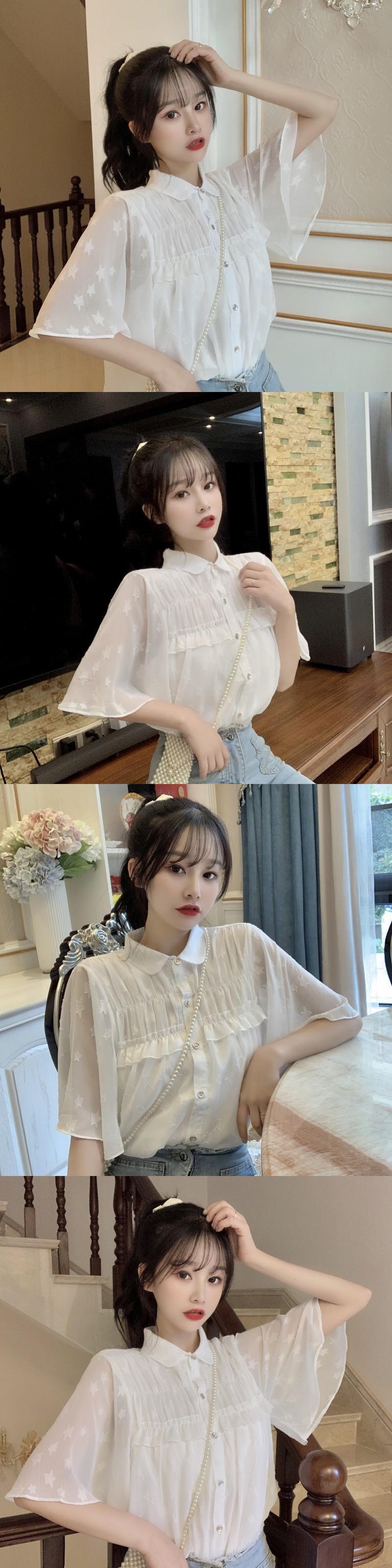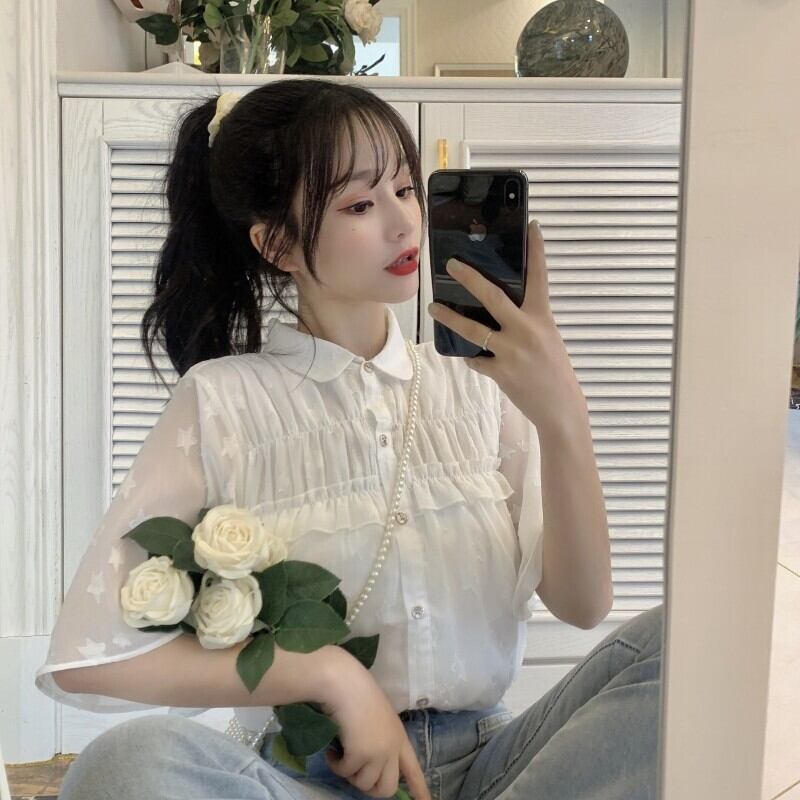 夏の女性ネットレッドスーパーフェアリースタンドアップカラーシフォン半袖Tシャツスウィートデザインニッチシャツエインスタイルボトミングシャツ 大人ガーリー キュート カジュアル サマー 夏物 TB2 TB279022068312