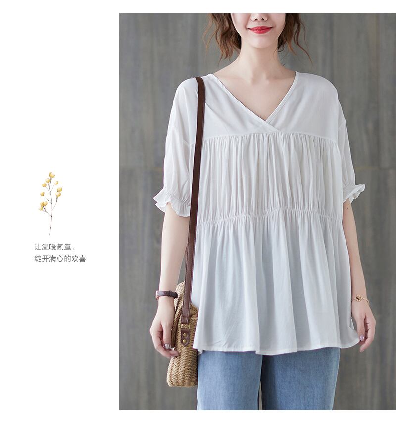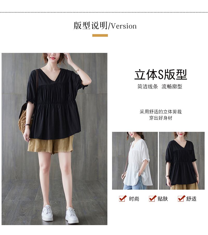 2021年夏の新しい脂肪mm文学大サイズ年齢を減らすカバー腹シャツルーズワイルド薄いVネック半袖Tシャツ女性 大きめサイズ サマー 夏物 TB2-12 TB2-1264980258804
