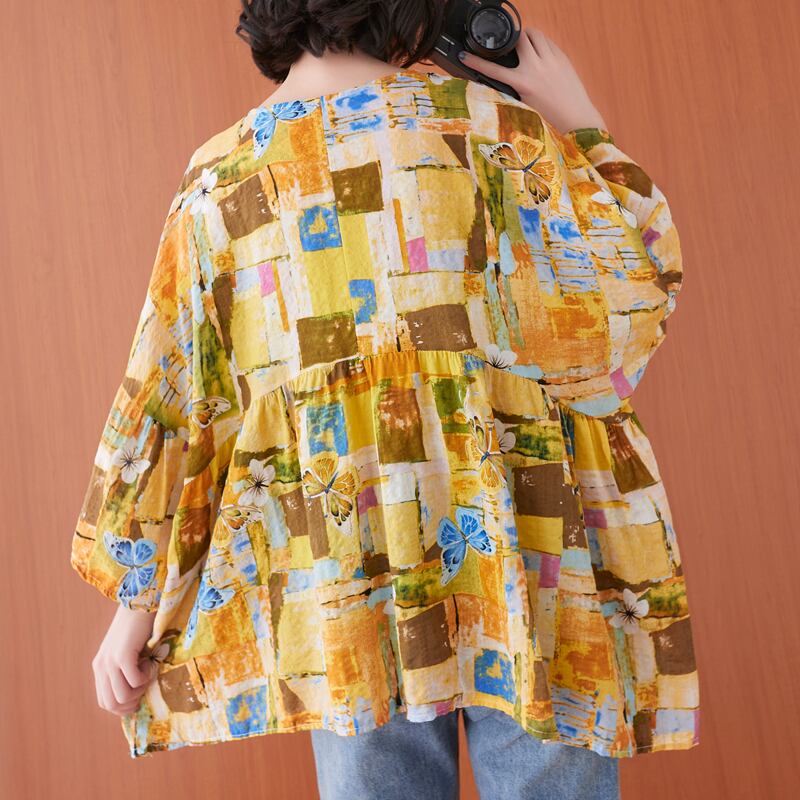 大きいサイズのシャツは薄く、おなかの太った姉妹を覆っていましたmm洋風の年齢を減らしたプリント半袖シャツ2021夏の新しい女性 大きめサイズ サマー 夏物 TB2-269549102482
