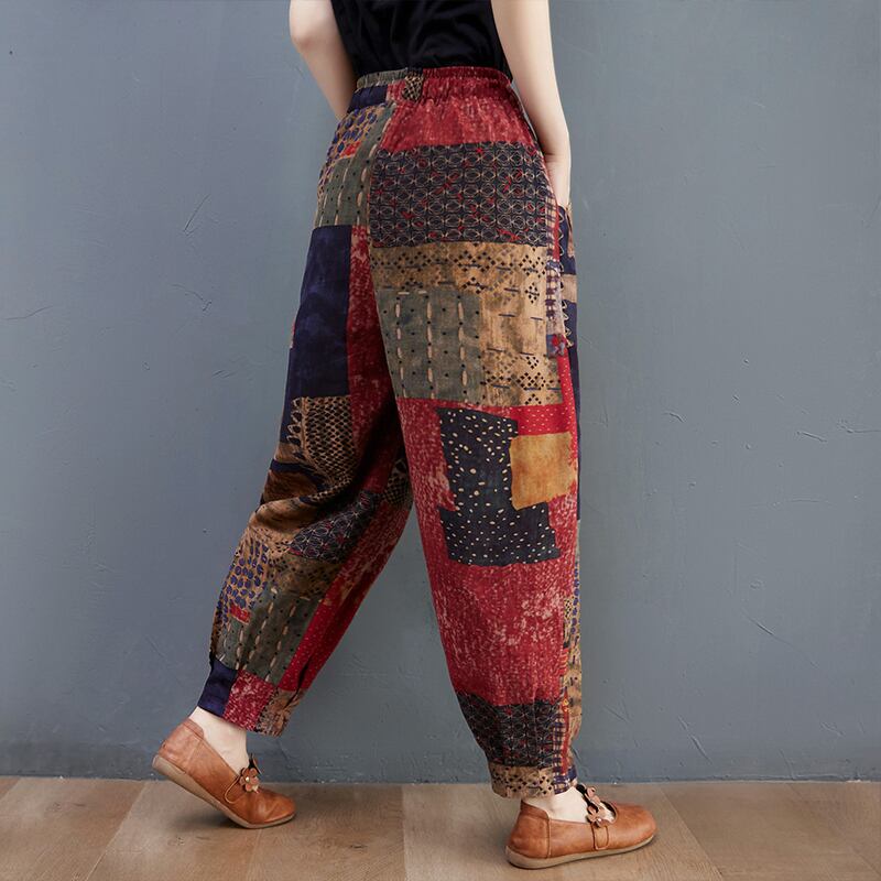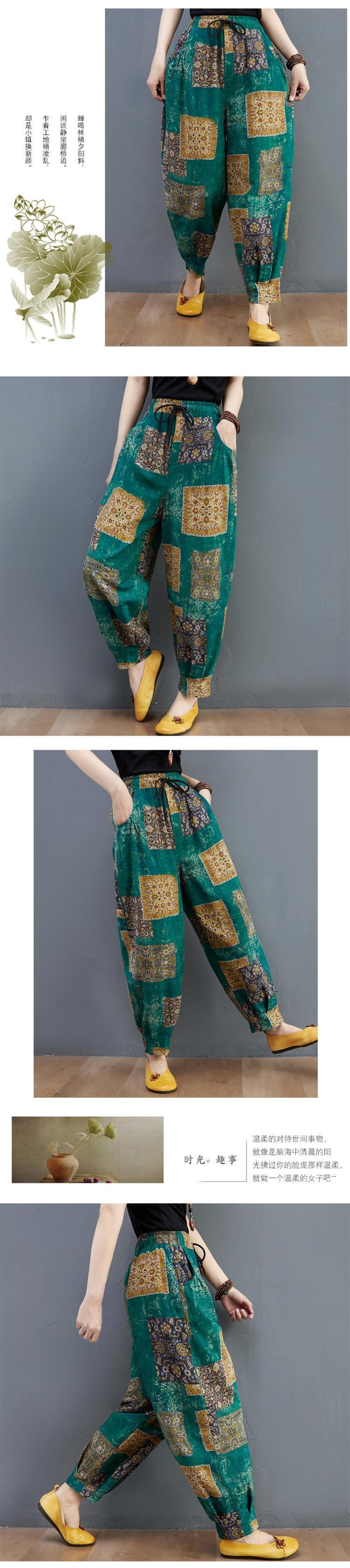 レトロなエスニックプリントのコットンとリネンのハーレムパンツ女性の2021年夏の新しいスタイルのエインスタイルのルーズカバーミート大根パンツタイド サマー 夏物 TB2-12 TB2-1238881654498