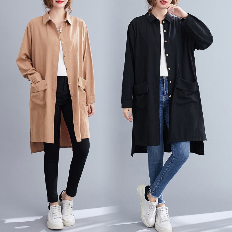 2021年春の新作太った妹ウエスト太い隠しミートトップルーズラージサイズアシンメトリー長袖シャツ ロング 大きめサイズ スプリング 春物 TB2-265665723265