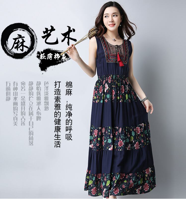 2021年夏の新しいレトロエスニックスタイルルーズラージサイズレディースコットンシルクスリム刺繍ロングドレス レッド 大きめサイズ サマー 夏物 TB2-12 TB2-1287448299127