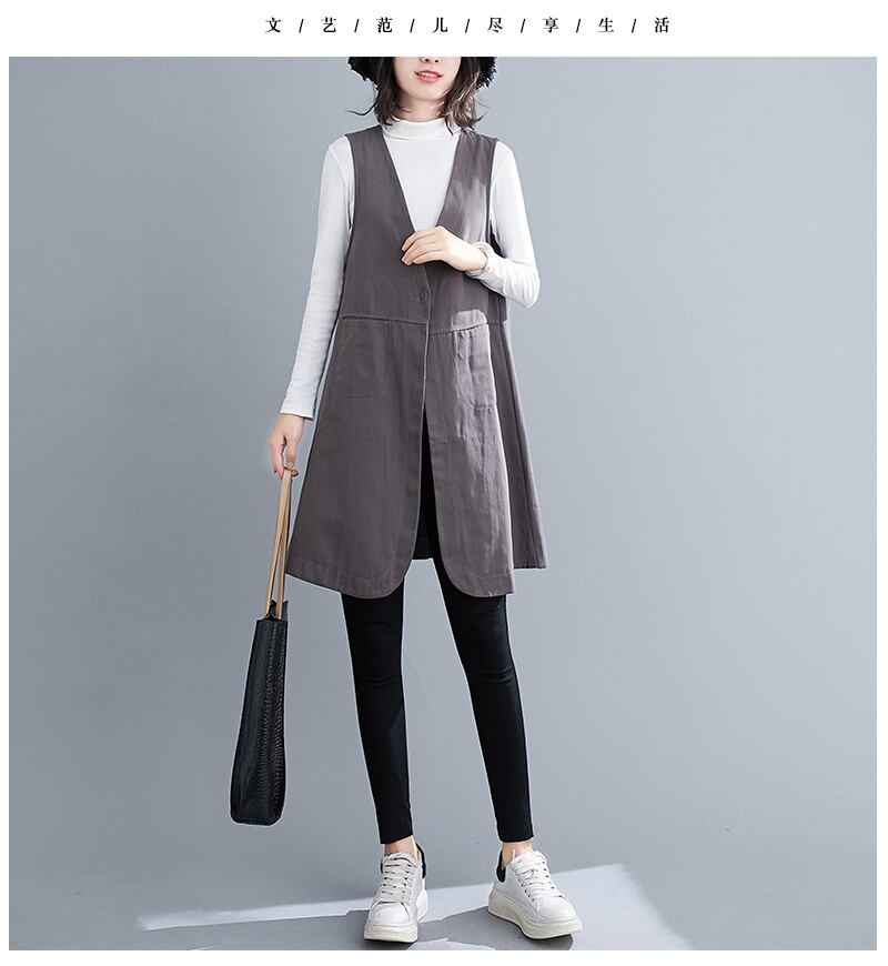 Xiaofeijia〜綿とリネンのベストの女性はゆるい大きいサイズのVネックアウターウェアノースリーブベストミドル丈カジュアルベスト コットン 大きめサイズ TB2-8 TB2-849393925578