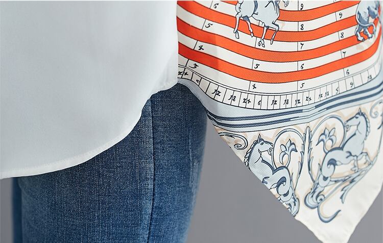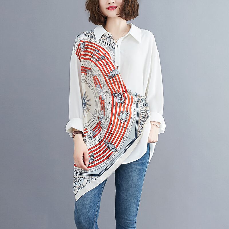 ラージサイズレディースレトロデザインシルクスカーフシャツレディースミドル丈イレギュラーヘムカジュアルルーズルーズシャツ 大きめサイズ TB2-8 TB2-857243386039