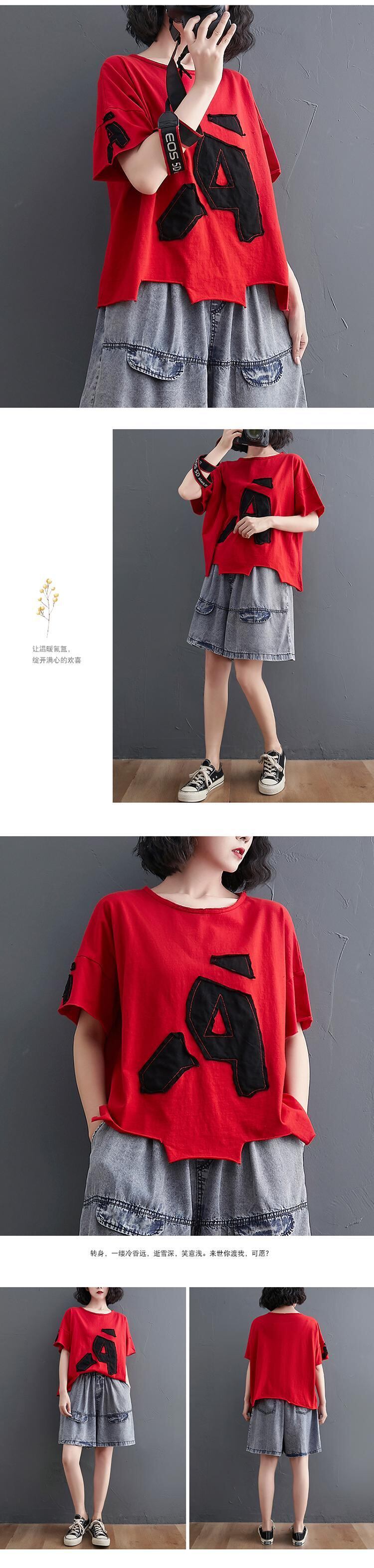2021年夏新しいルーズラージサイズレディースTシャツカジュアルオールマッチ年齢を減らすコントラストカラーパッチ半袖トップス 大きめサイズ サマー 夏物 TB2-8 TB2-856840290571